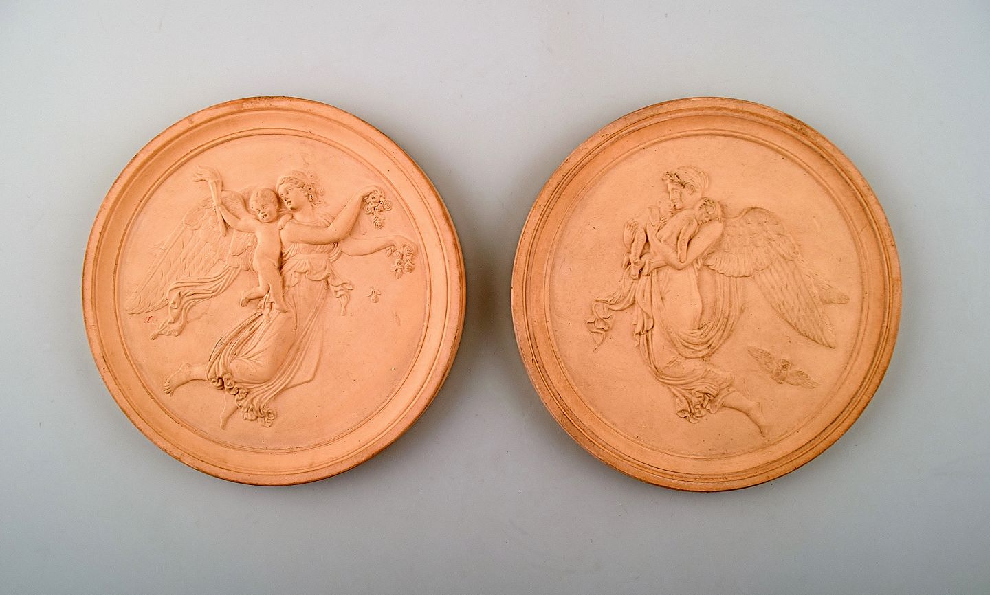 P. Ipsen's widow. 1880s. 2 Plaques of fired clay / terracotta. Stamped P. Ipsen Copenhagen. 361 Measures 13 x 1 cm. In perfect condition.