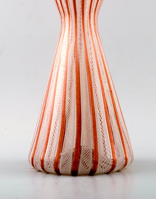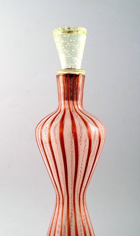 Murano karaffel/ stor flakon, 1960´erne. Etiket fra Murano. I perfekt stand. Måler 35 x 9 cm.