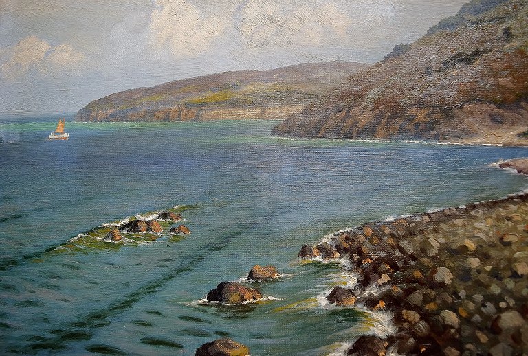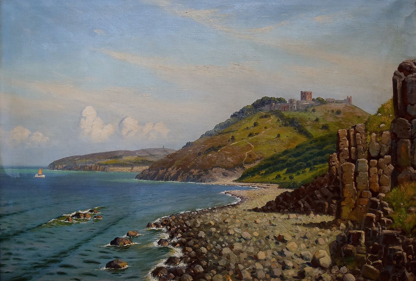 Kai Drews: Scenery from Hammershus, Bornholm. Signed K. Drews. 1939. Oil on canvas. Measuring 100 cm x 70 cm. The frame measures 11 cm. In very good condition.