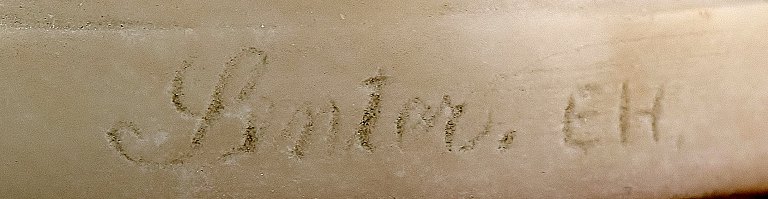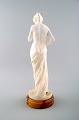 Stor figur af nøgen kvinde i alabast på marmor sokkel. Tidligt 1900-tallet. Ubekendt kunstner. Signeret : Sinter, EH. Måler : 32,5 cm. x 9 cm. I perfekt stand.