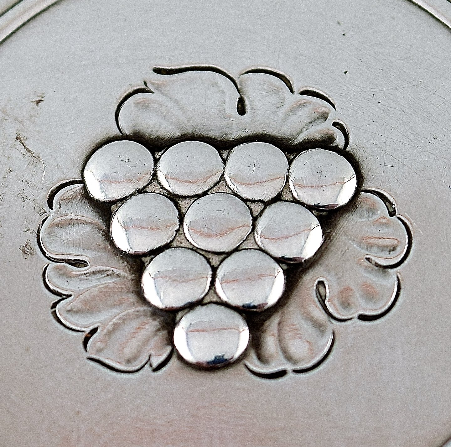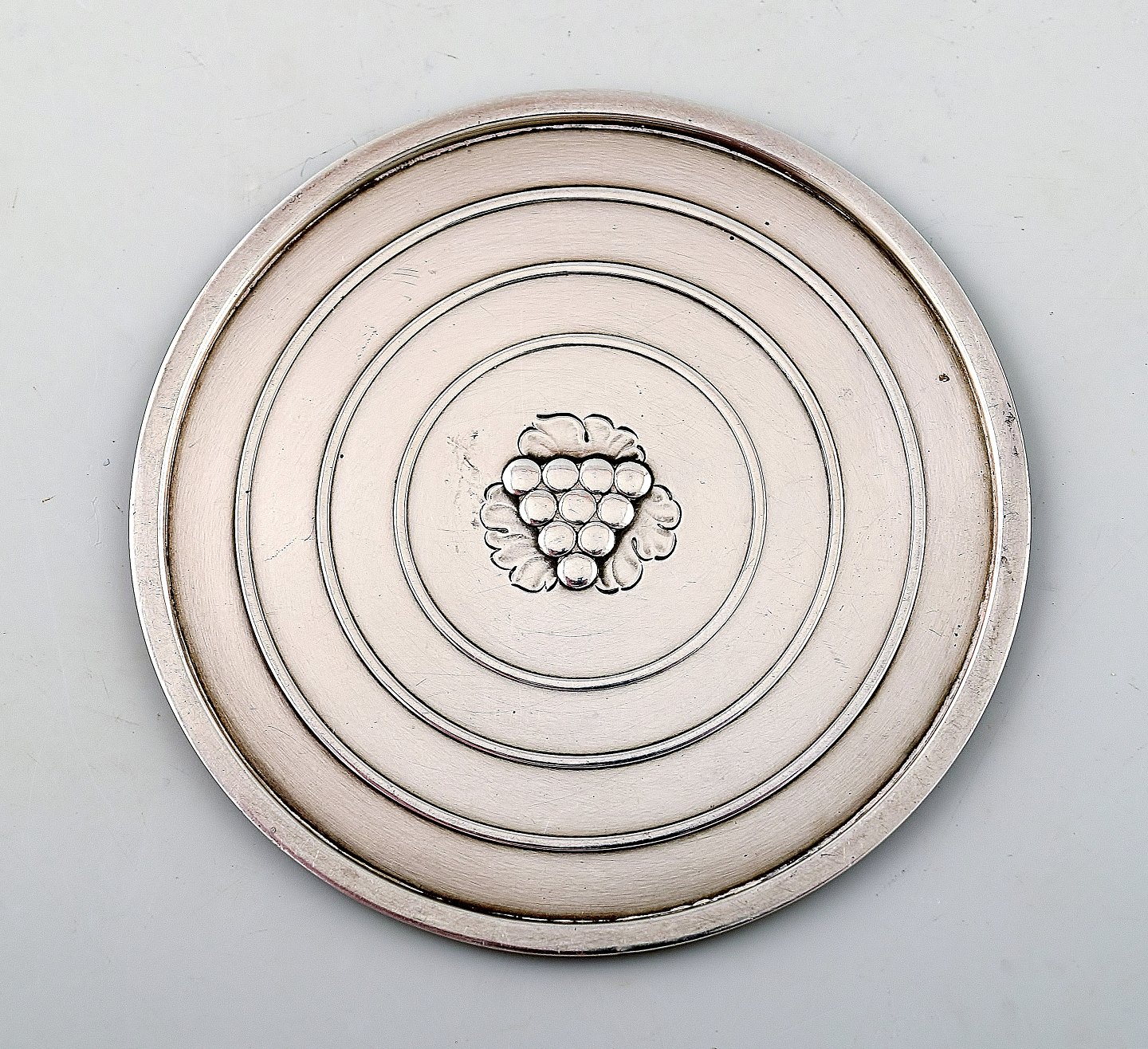 Georg Jensen: Twelve coasters of sterling silver. Inside chased with a bunch of grapes. Georg Jensen 1933-1944. Dessin 193. Diameter 6.5 cm. In very good condition.