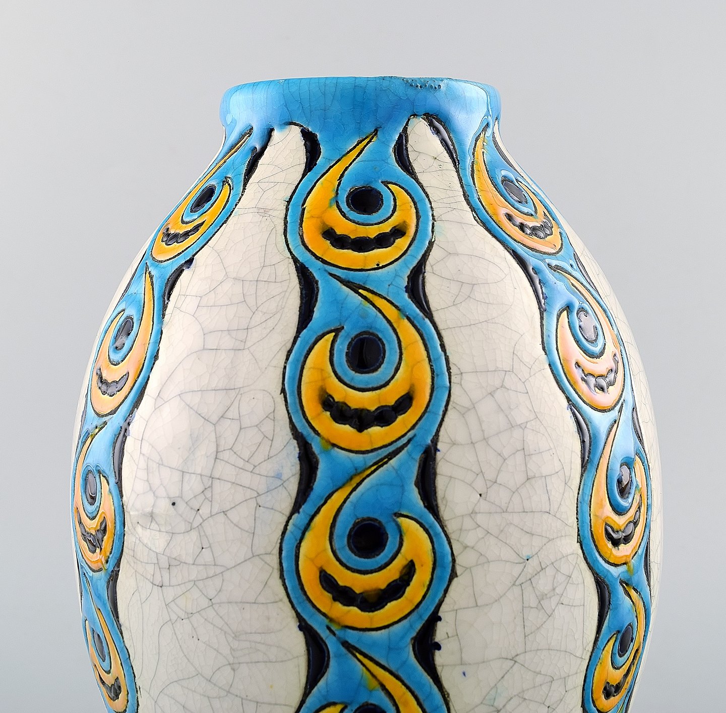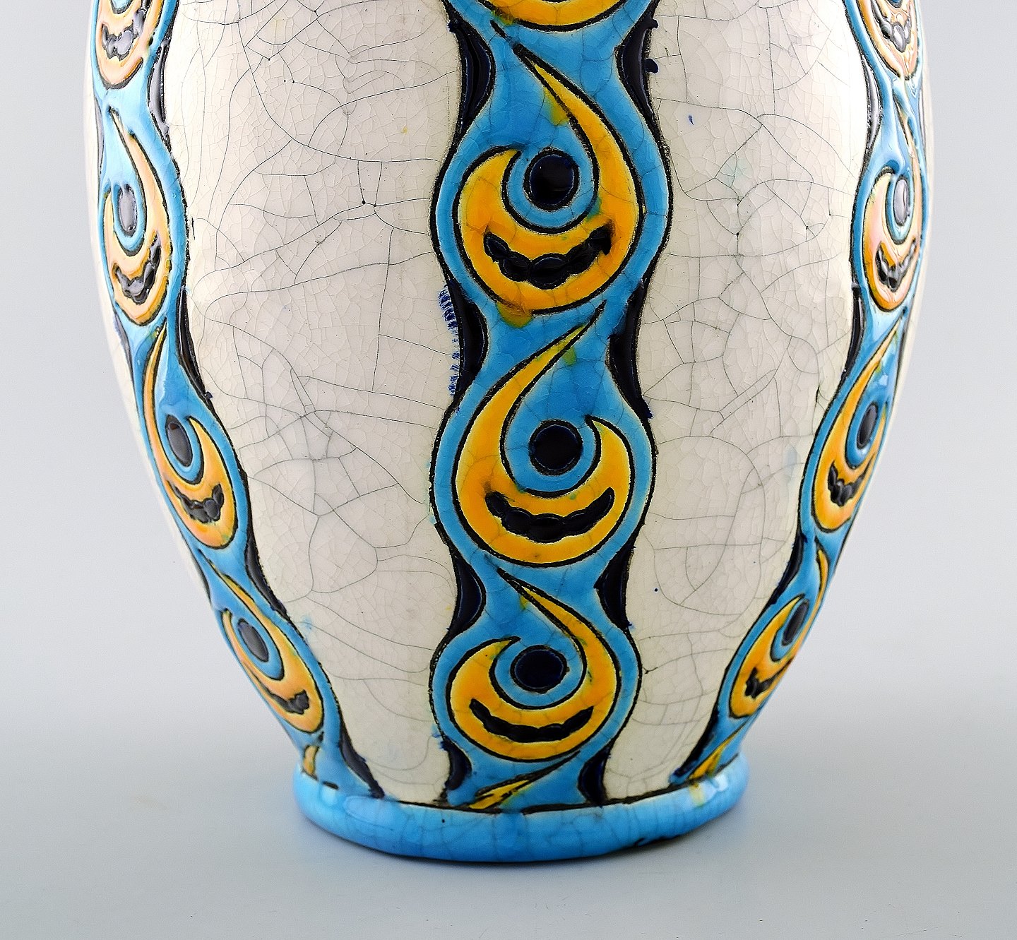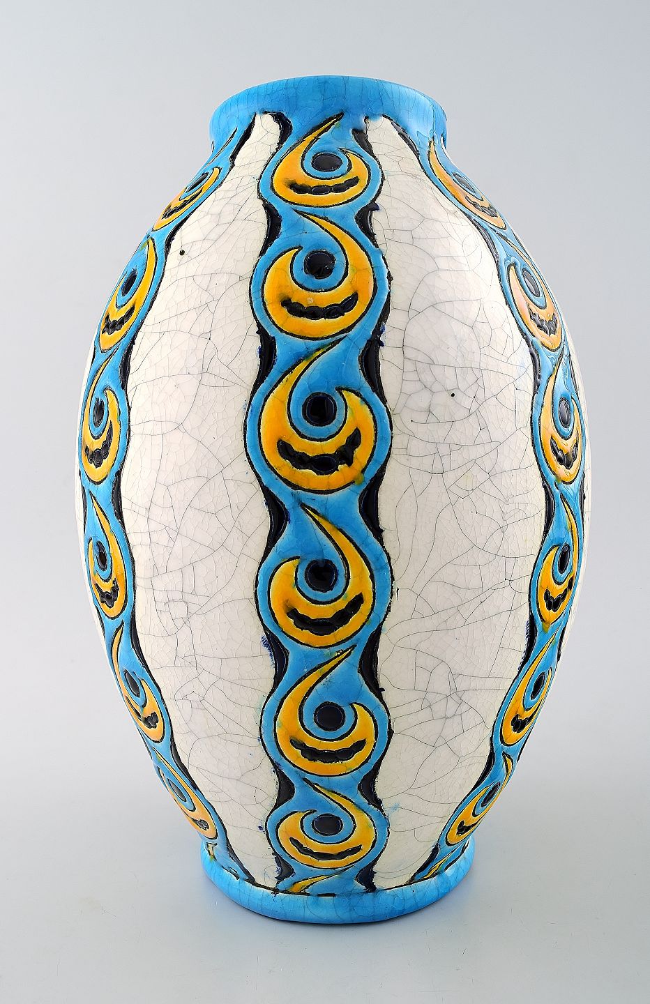 Boch Freres Keramis, Belgien stor art deco keramikvase.