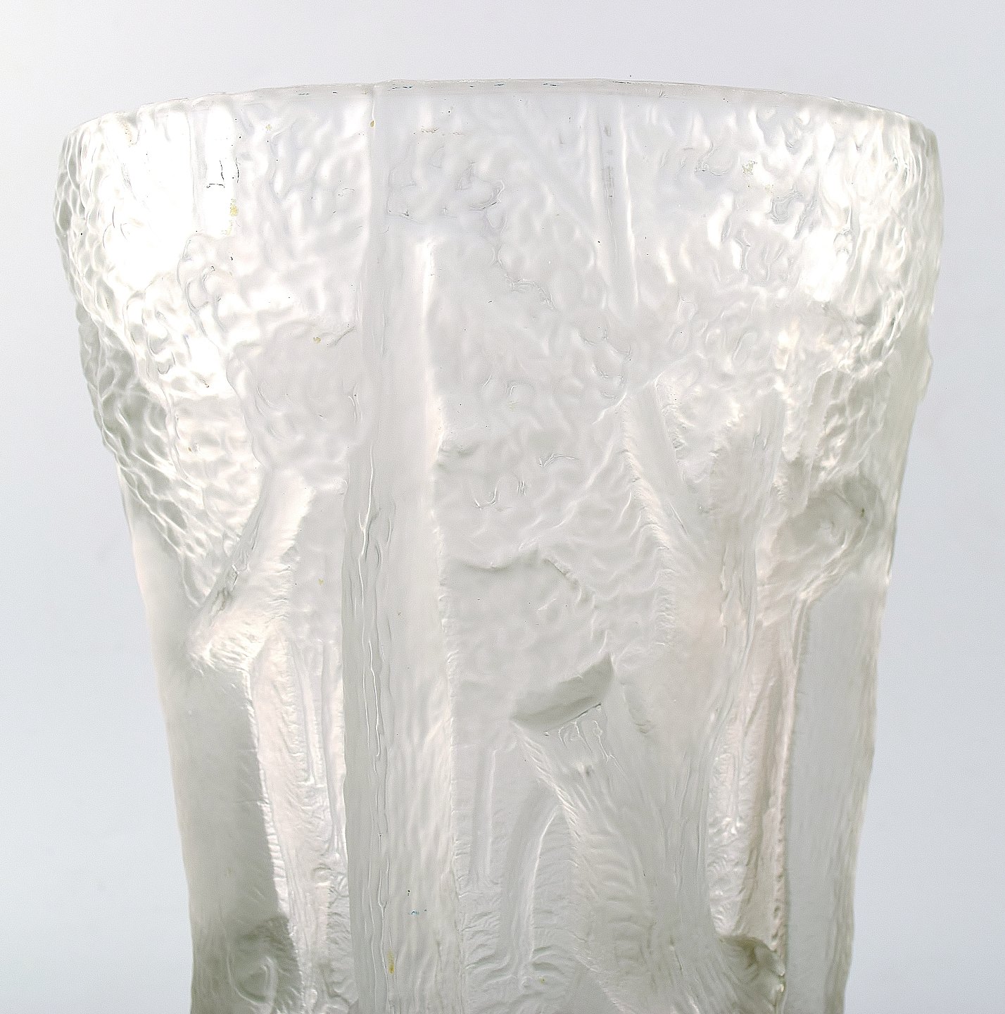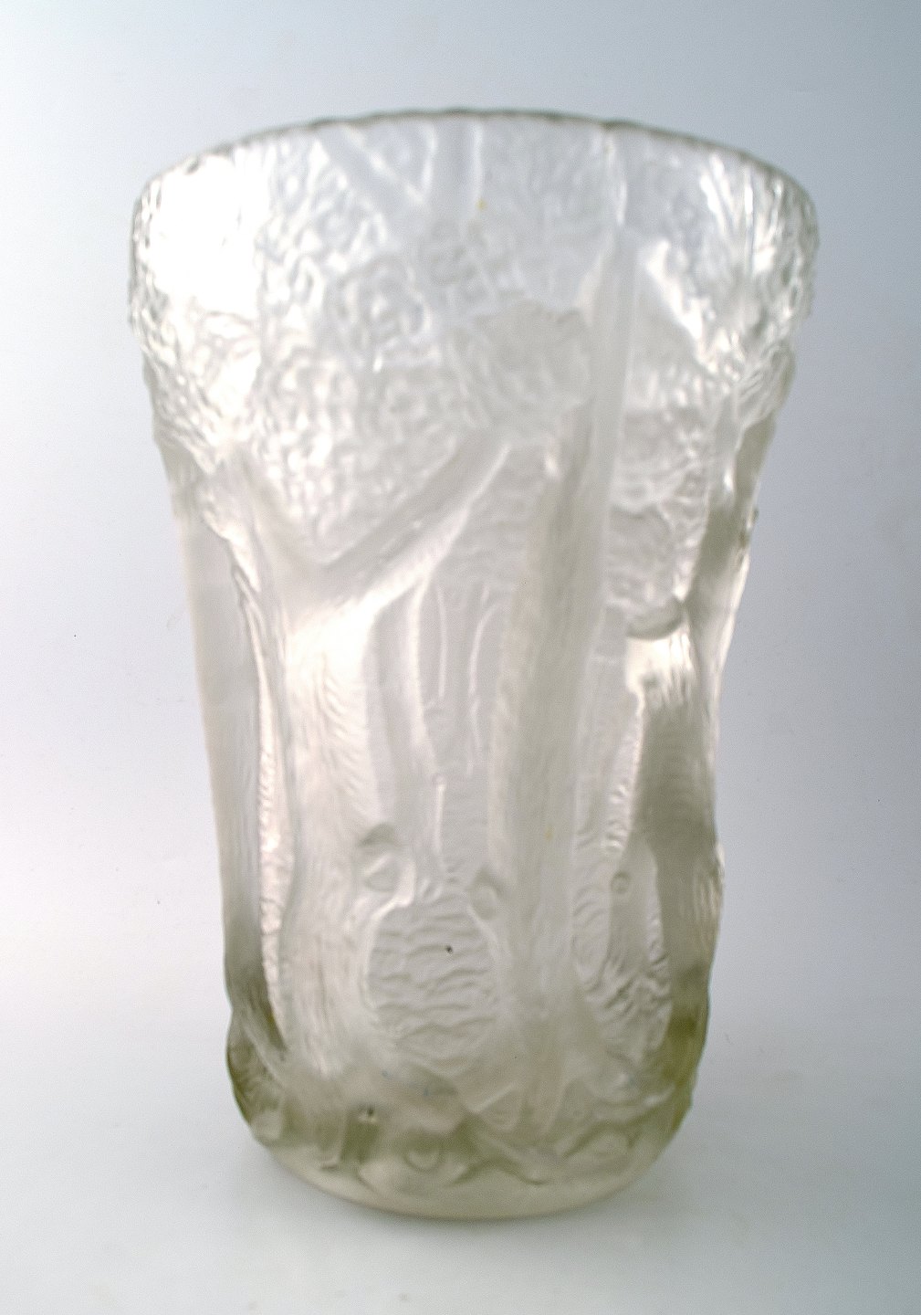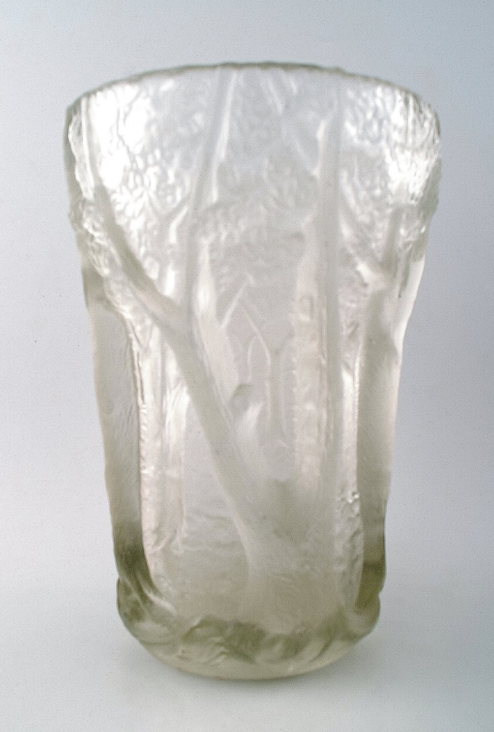 Fransk Art Deco kunstglasvase, træer i relief. Måler : 26 cm. x 18 cm. 1940/50´erne. I flot stand. Ustemplet.