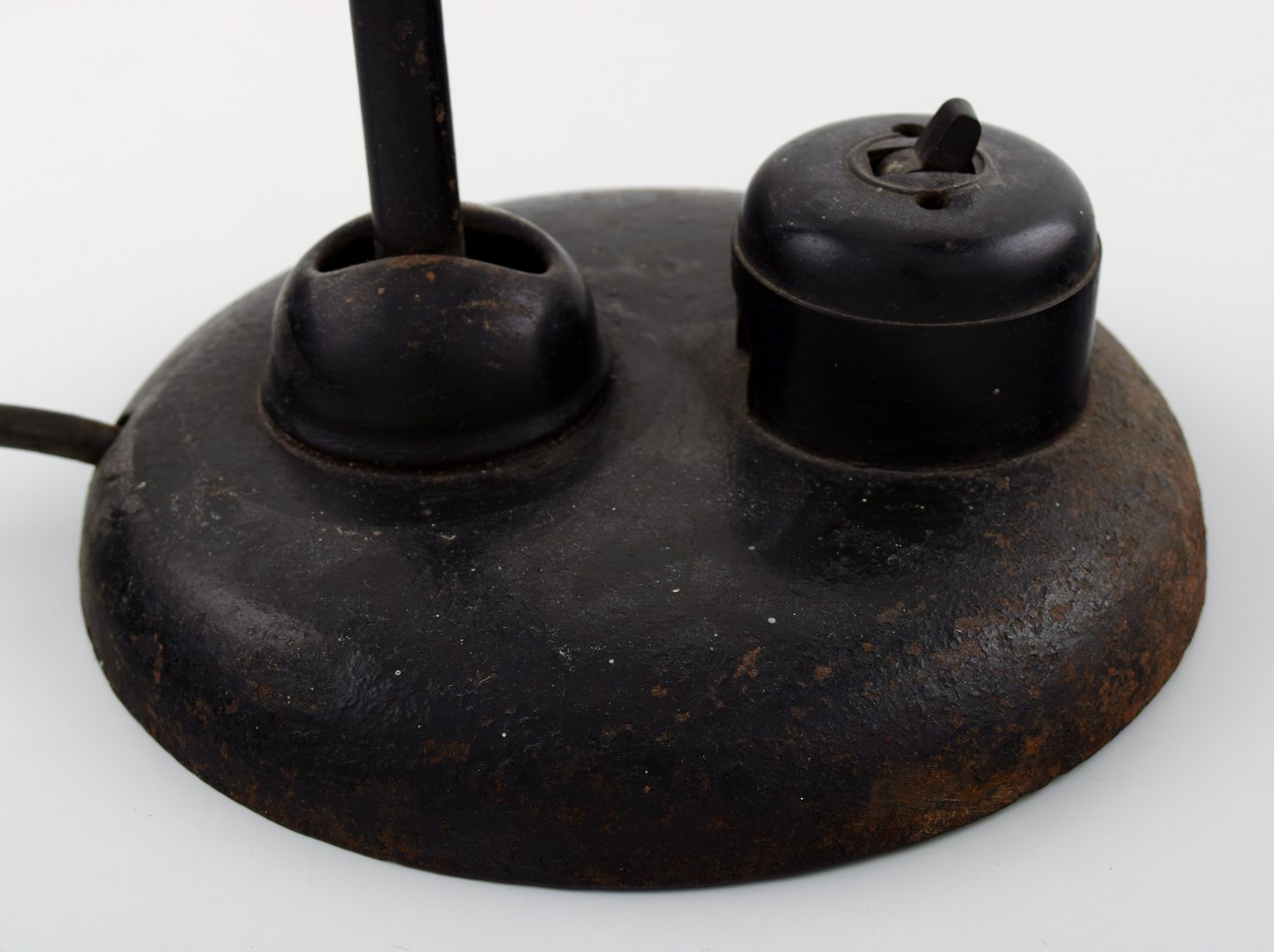 Christian Dell: f. Offenbach am Main 1893, d. Wiesbaden 1974. Industriel Bauhaus bordlampe af sortlakeret metal med justérbar skærm. Mærket Original Kaiser iDell. Højde : 45 cm. I flot original stand.