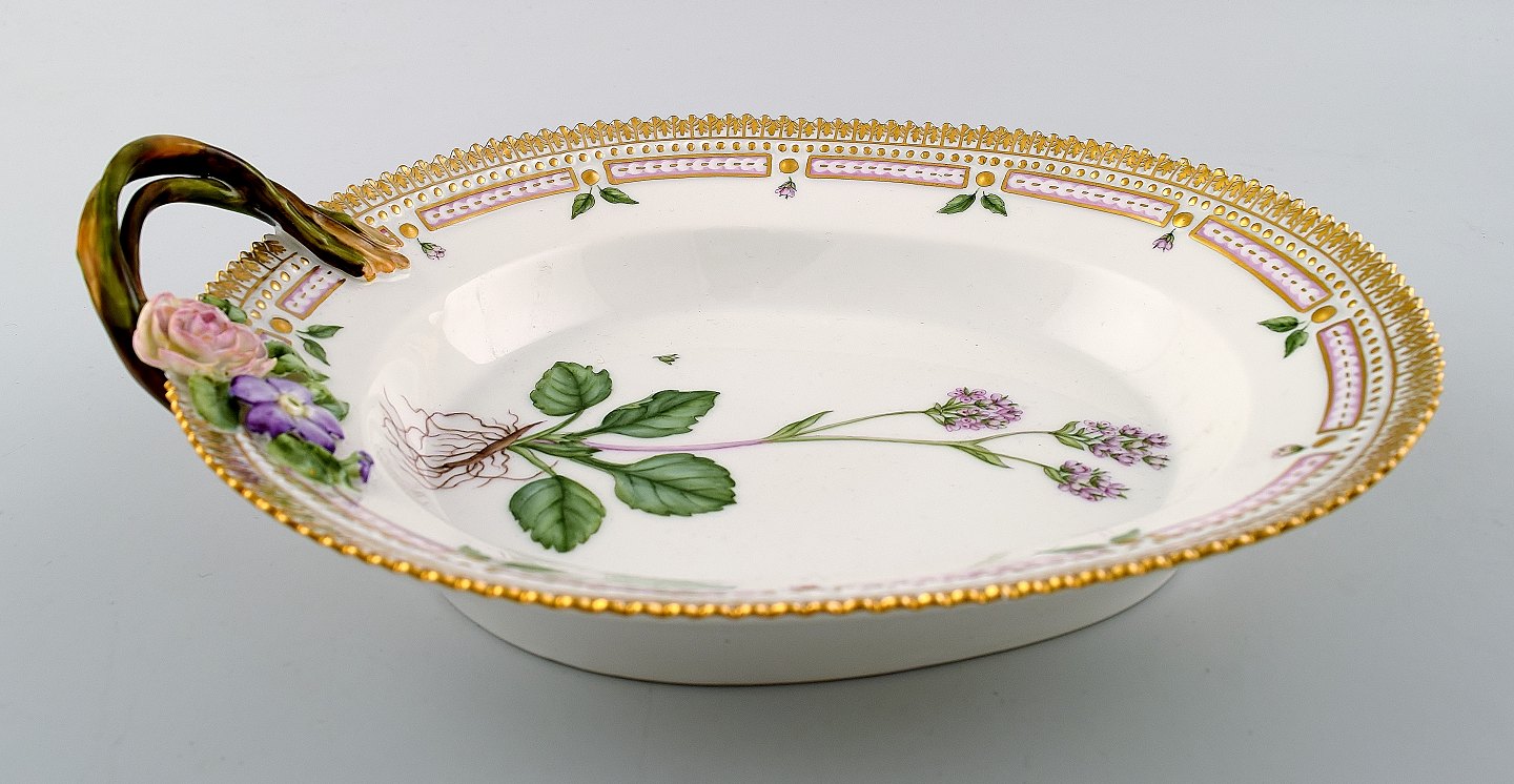 Royal Copenhagen/Kongelig Porcelæn Flora Danica Bladformet skål med hank, 20/3541.