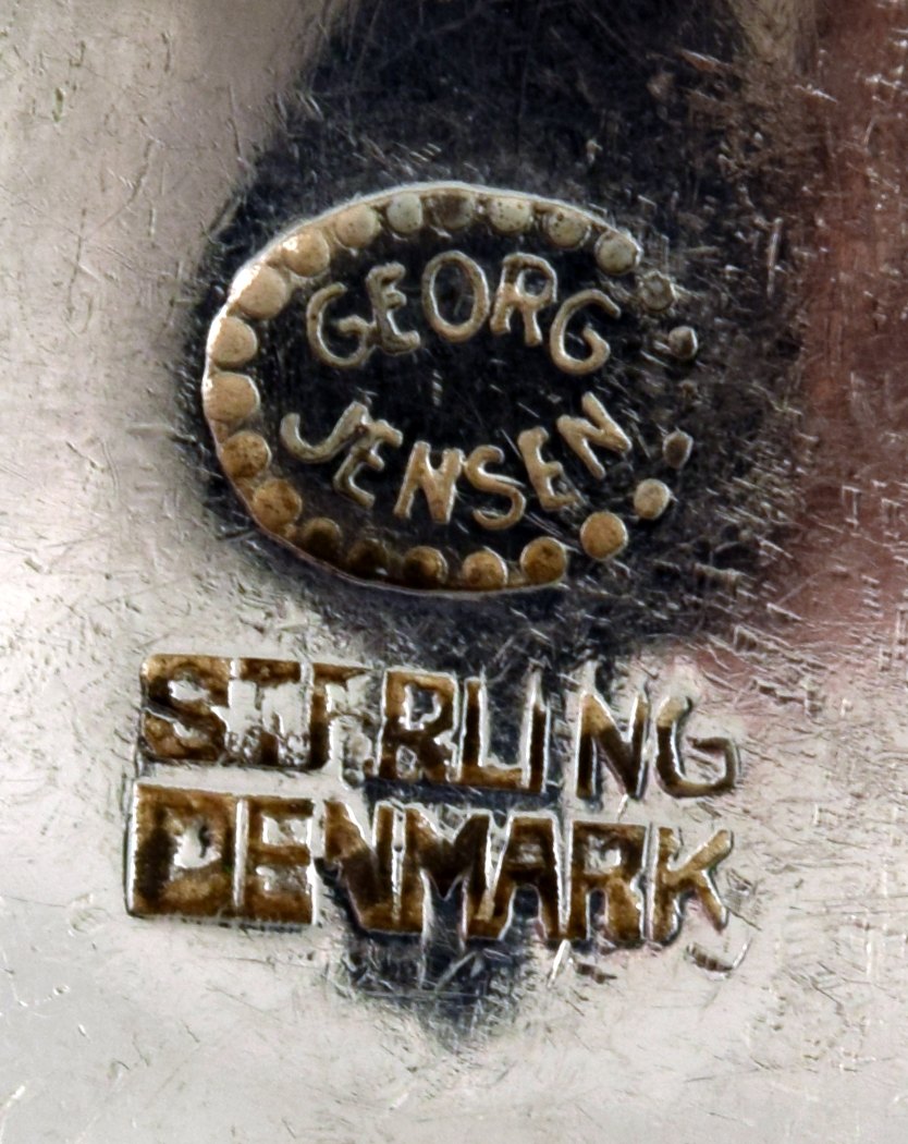 3 Georg Jensen Pyramide dessertske. Designet af Harald Nielsen 1933-44. I perfekt stand. Måler 18 cm.
