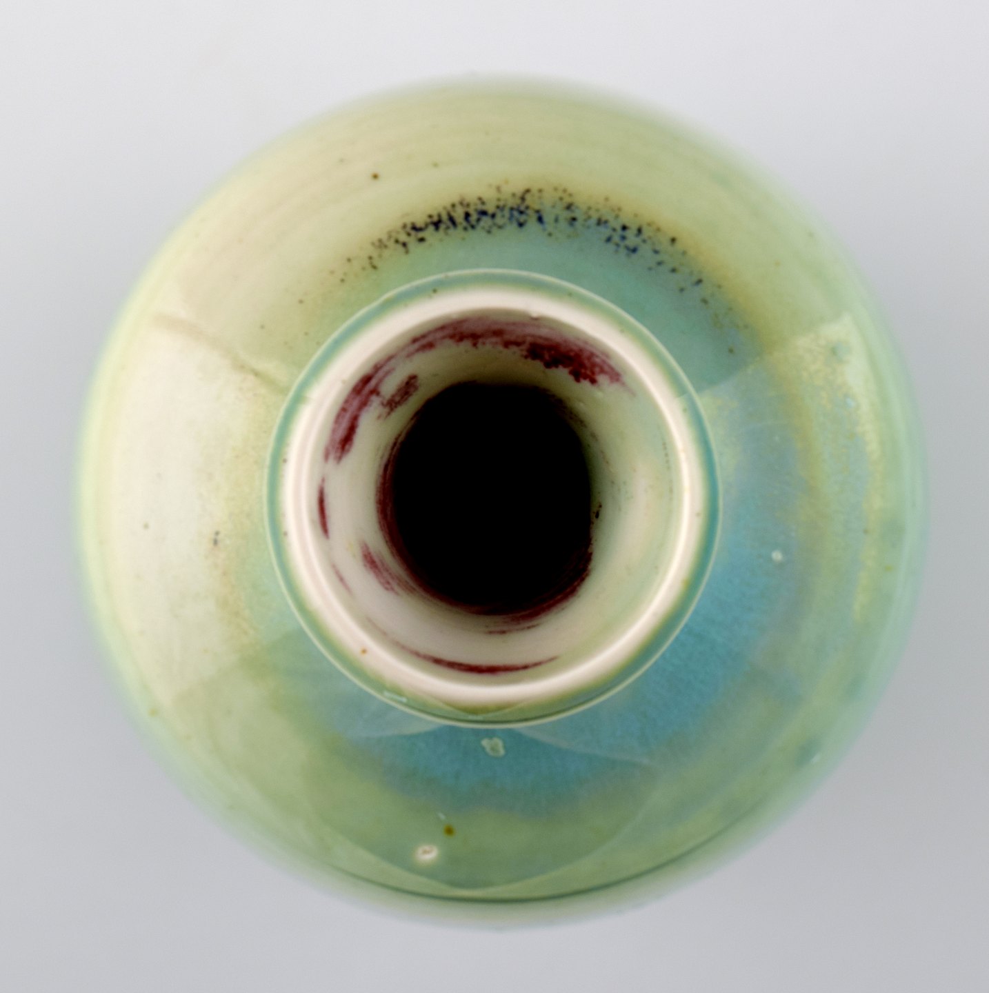 Sven Hofverberg (1923-1998) Svensk keramiker. Keramikvase i grønne og blå nuancer. Stemplet. Sverige 1970/80´erne. I perfekt stand. Måler : 21 x 11 cm.