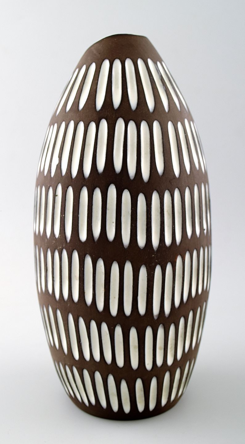 Ingrid Atterberg for Upsala-Ekeby "Negro" ceramic vase in art deco style. In perfect condition. Model No. 2133. Measures 25 x 12 cm. Marked.