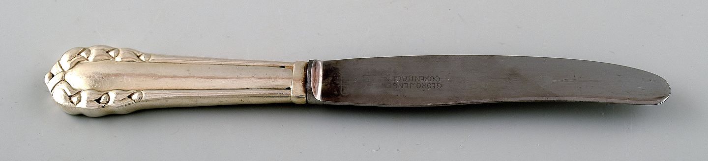 2 pcs. Georg Jensen Lily of the valley silver luncheon knives. Measures 20.5 cm. In good condition. Early stamp. Designed by Georg Jensen in 1913.