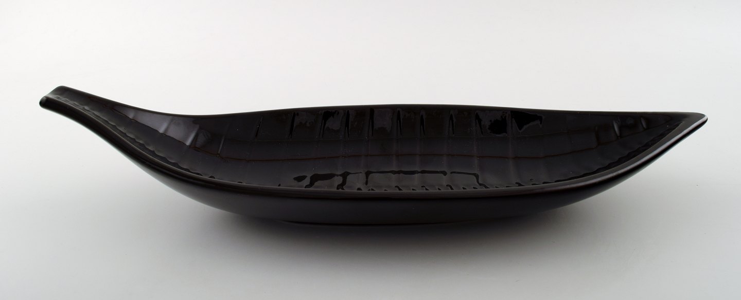 2 store keramikfade, svensk design, 60´erne. Måler : Største 35 cm. x 11 cm. Flot glasur !! Utydeligt stemplet. I perfekt stand.