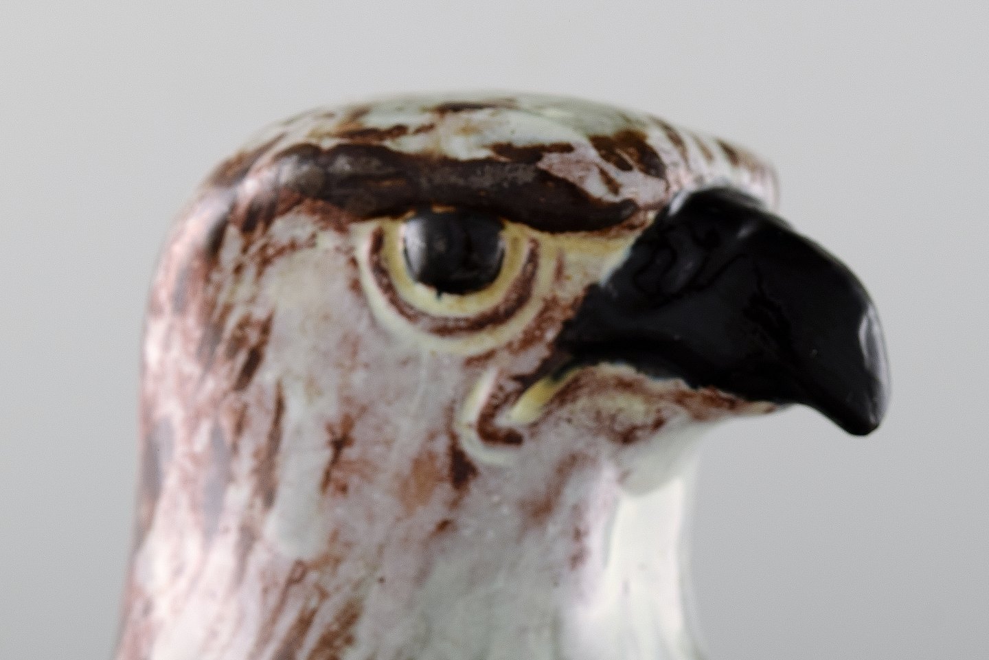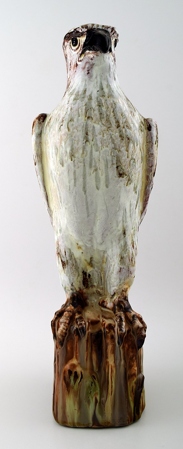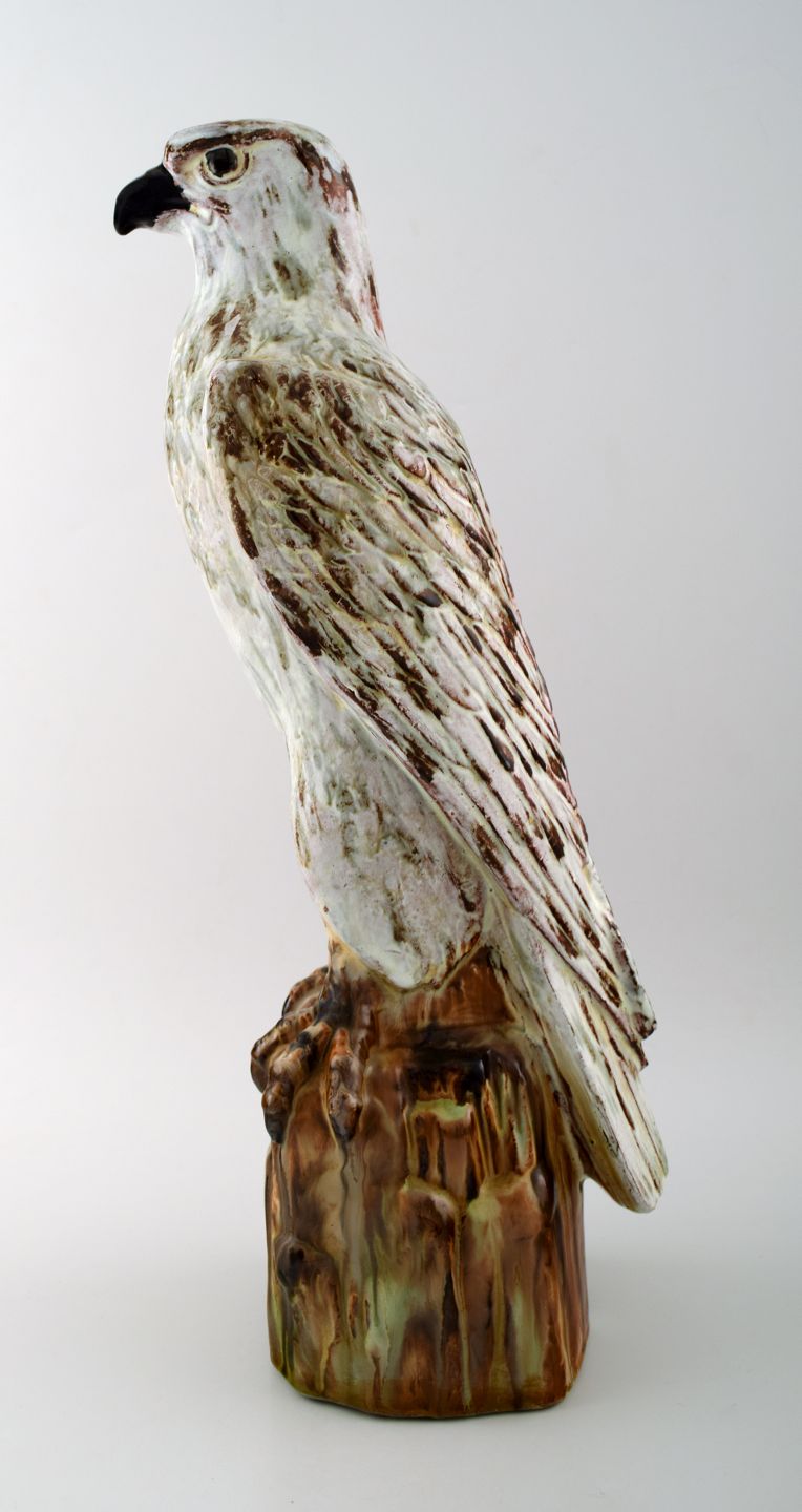 Gudmundur Mar Einarsson f. Middal 1895, d. 1963: Islandsk falk af keramik dekoreret med grå, grønne, brune og hvid glasur. Signeret i monogram GE, Island. 1940 ?. Måler : 42 cm. x 12,5 cm. I perfekt stand.