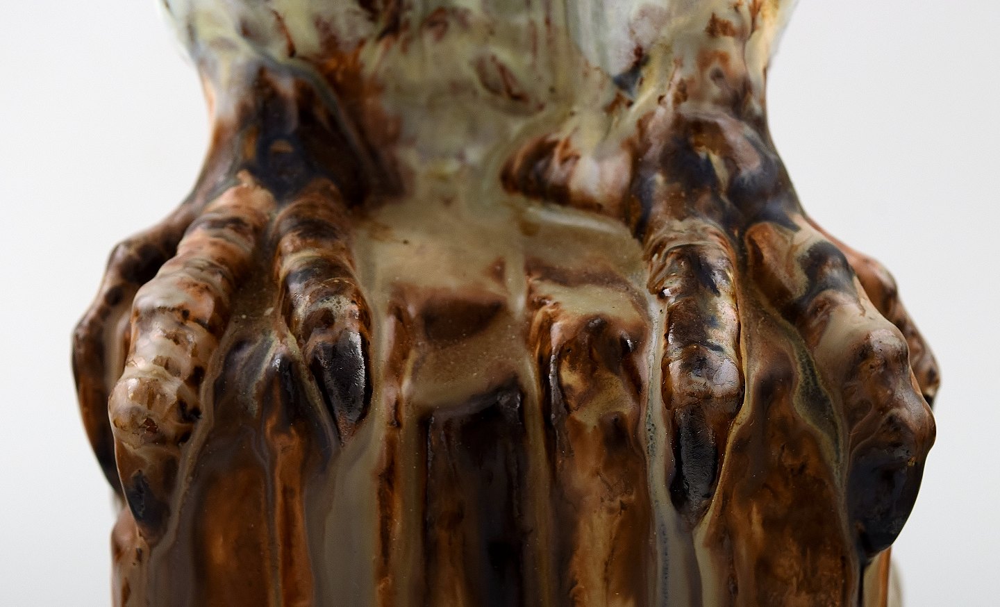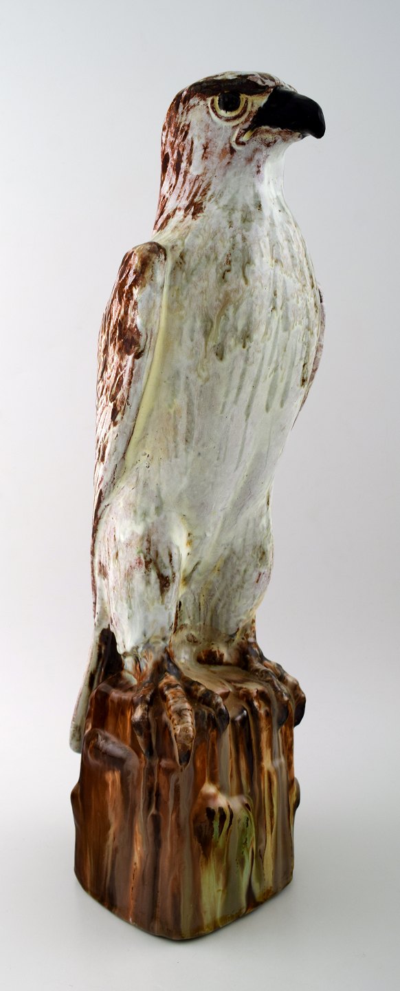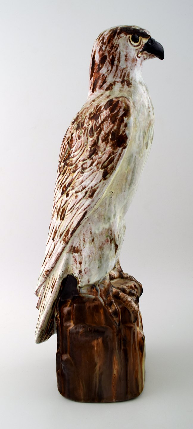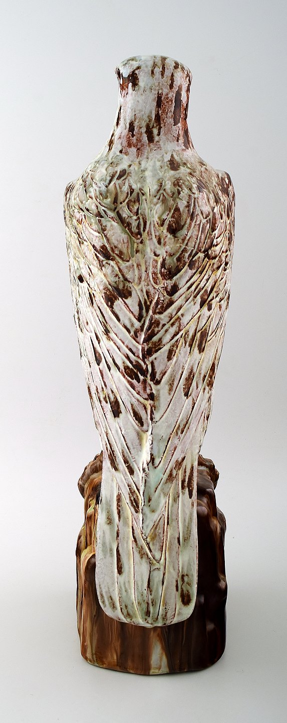 Gudmundur Mar Einarsson f. Middal 1895, d. 1963: Islandsk falk af keramik dekoreret med grå, grønne, brune og hvid glasur. Signeret i monogram GE, Island. 1940 ?. Måler : 42 cm. x 12,5 cm. I perfekt stand.