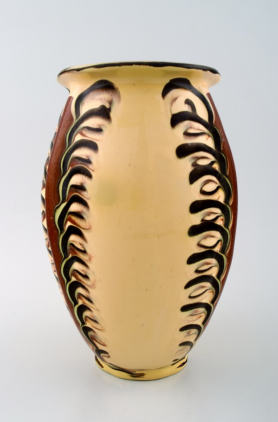 Kähler, HAK, glaseret stentøjsvase. 1930´erne. Stemplet. Måler : 24 cm. x 15 cm. I perfekt stand.