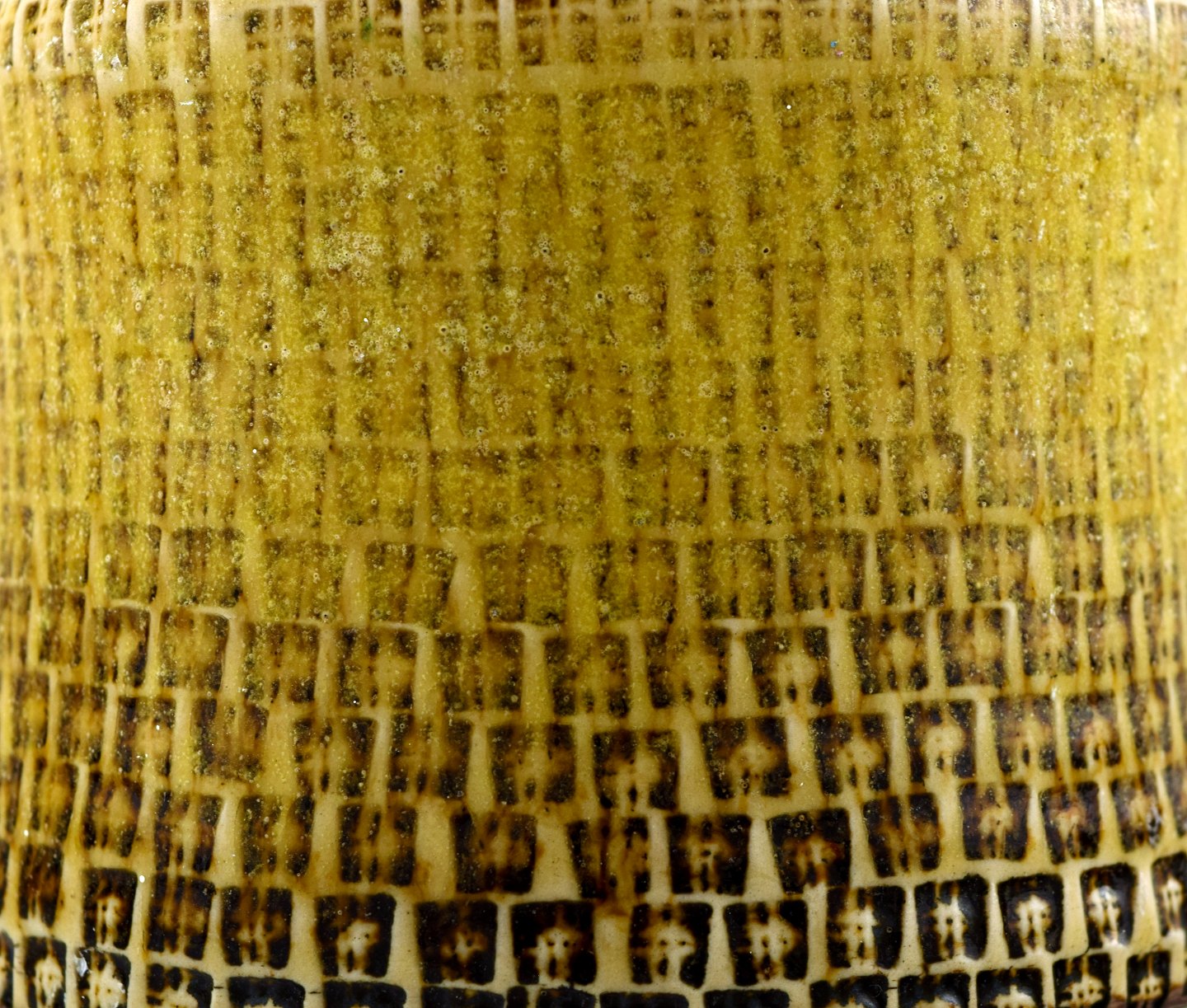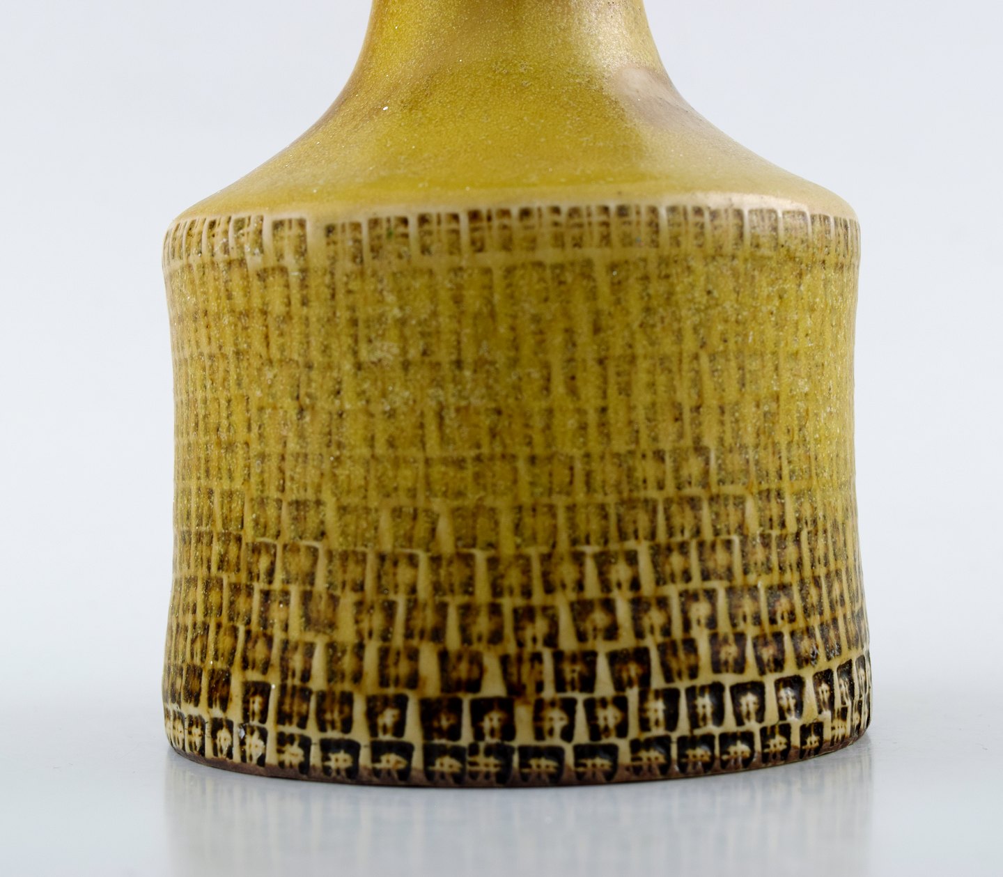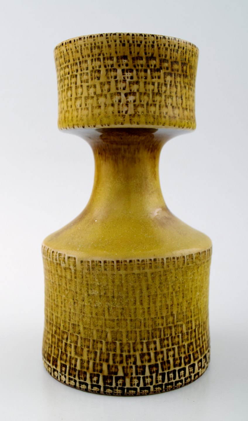 Stig Lindberg (1916-1982), Gustavsberg Studio keramikvase. Glasur i gule nuancer, ca. 1960. Stemplet med Studiohand. Måler 17,5 cm. x 10 cm. I perfekt stand.