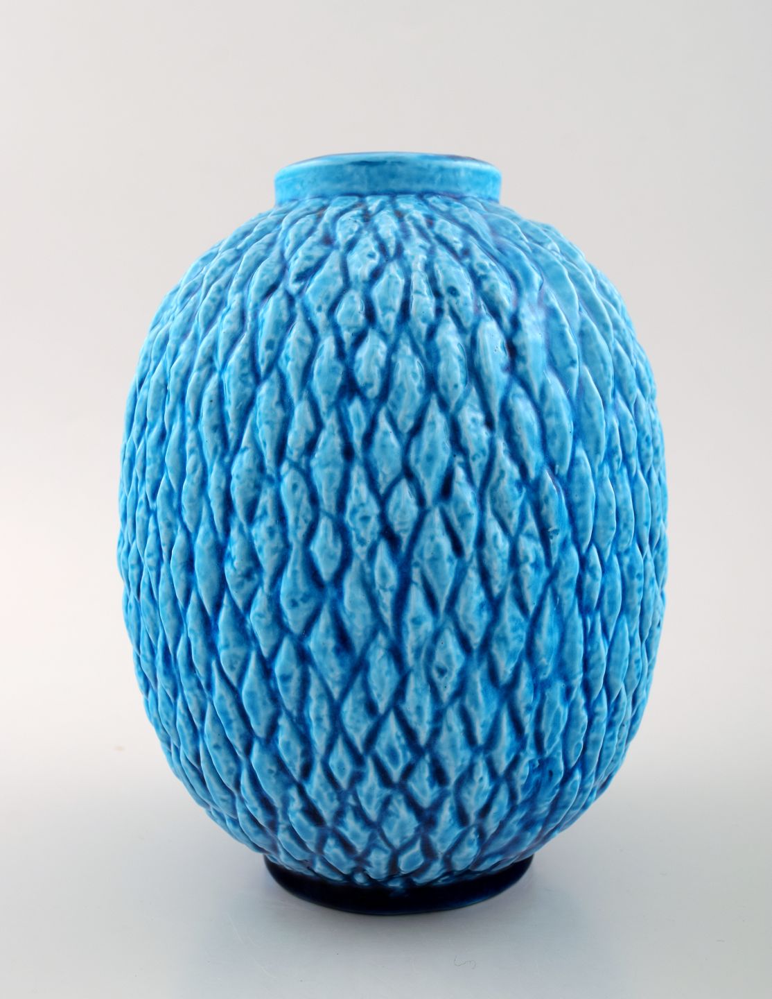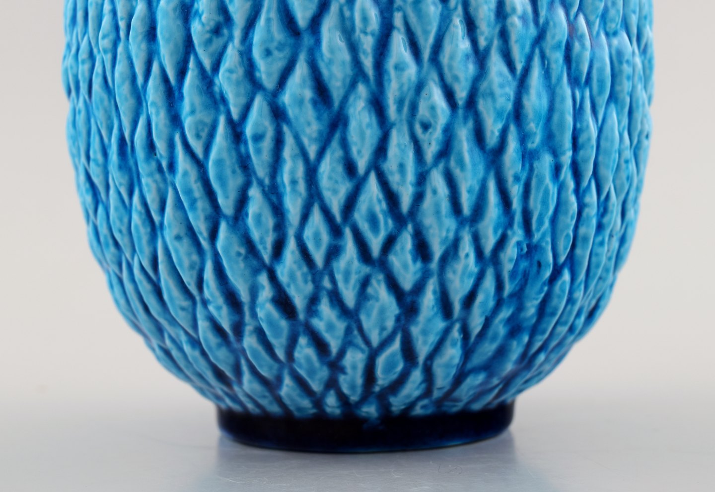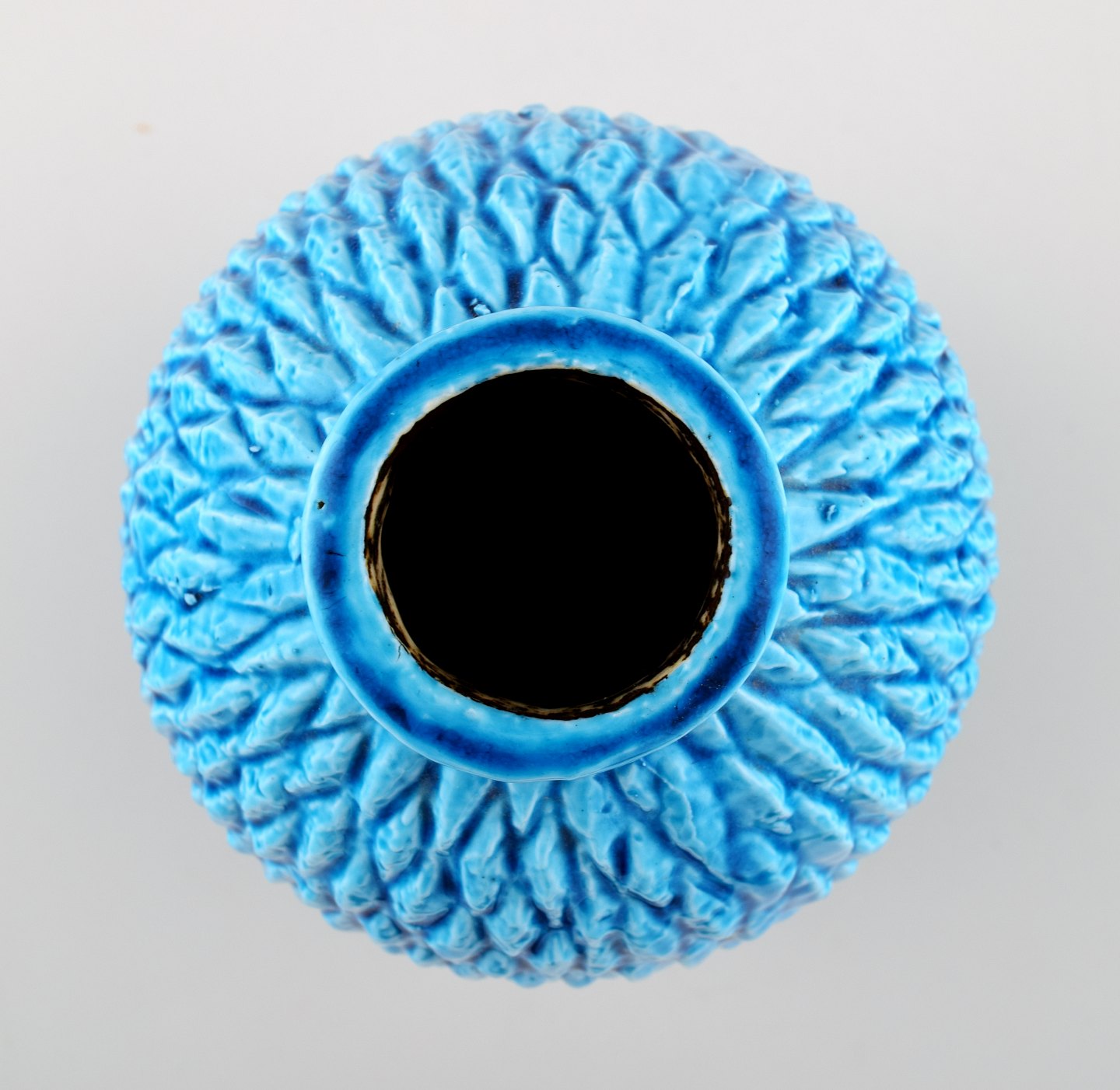 Rörstrand Gunnar Nylund "Chamotte" vase. Måler : 16 x 13 cm. Turkis glasur. Stemplet. I perfekt stand.