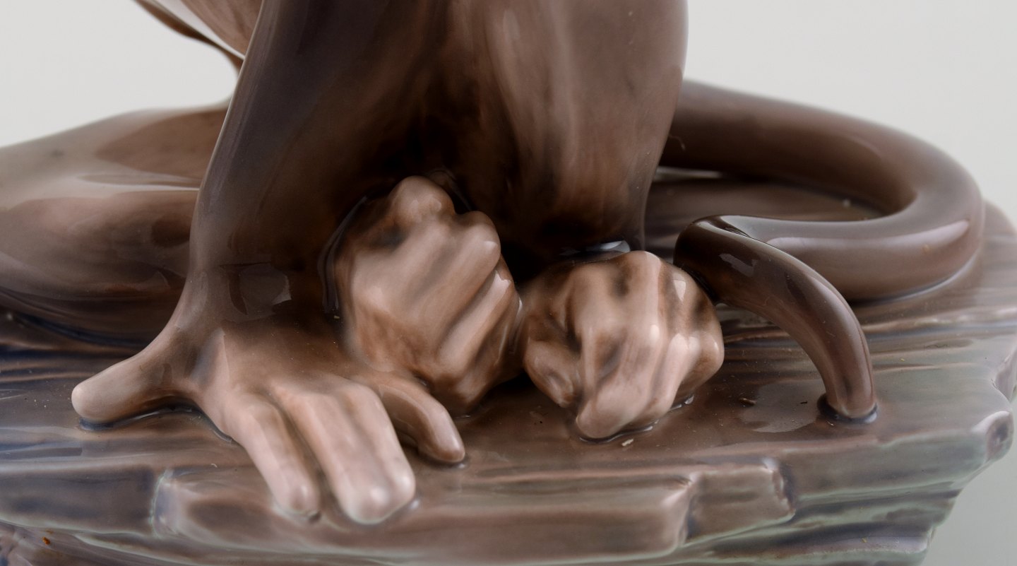 Sjælden Dahl Jensen. Abe på sten, figur i porcelæn, nummer 1086.