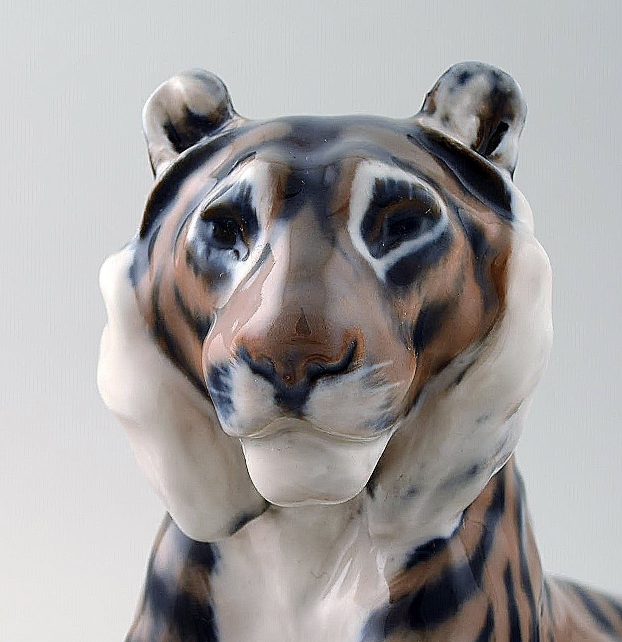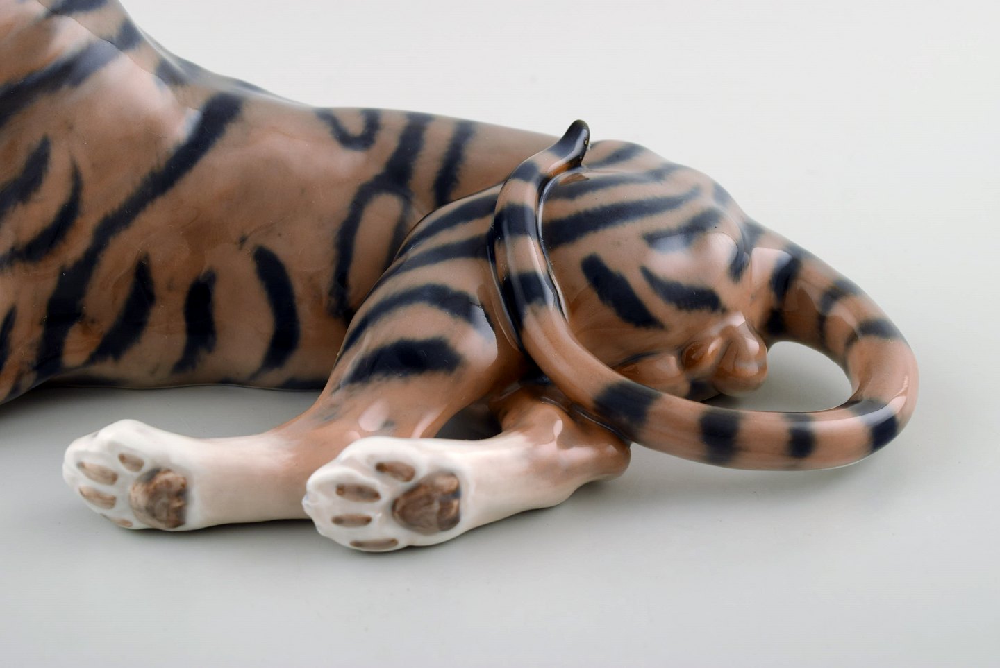 Royal Copenhagen/Kgl. Porcelæn. Porcelænsfigur i form af tiger, nr. 714. Tegnet af Lauritz Jensen (1859-1935). Længde 31,5 cm. I god stand. 3. sortering.