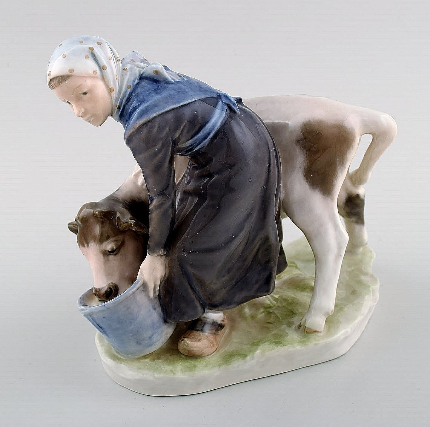 Pige med kalv (nr. 779) fra Royal Copenhagen. 1. sortering, i perfekt stand. H. 15 cm. B. 16,5 cm.