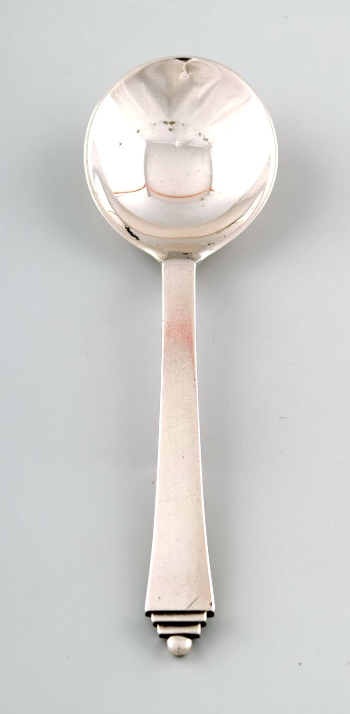 Georg Jensen Pyramide marmeladeske. Designet af Harald Nielsen 1933-44. Tidligt stempel. I perfekt stand. Måler 12,8 cm.