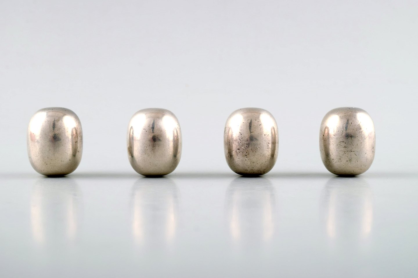 7 dansk design drinkskølere. Piet Hein super-æg som drink-køler udført i rustfrit stål. Stemplet EPNS ABSA, Denmark. 1970/80´erne. Måler : 15.5 cm. Æg måler : 3,2 cm. x 2,7 cm. I god stand.