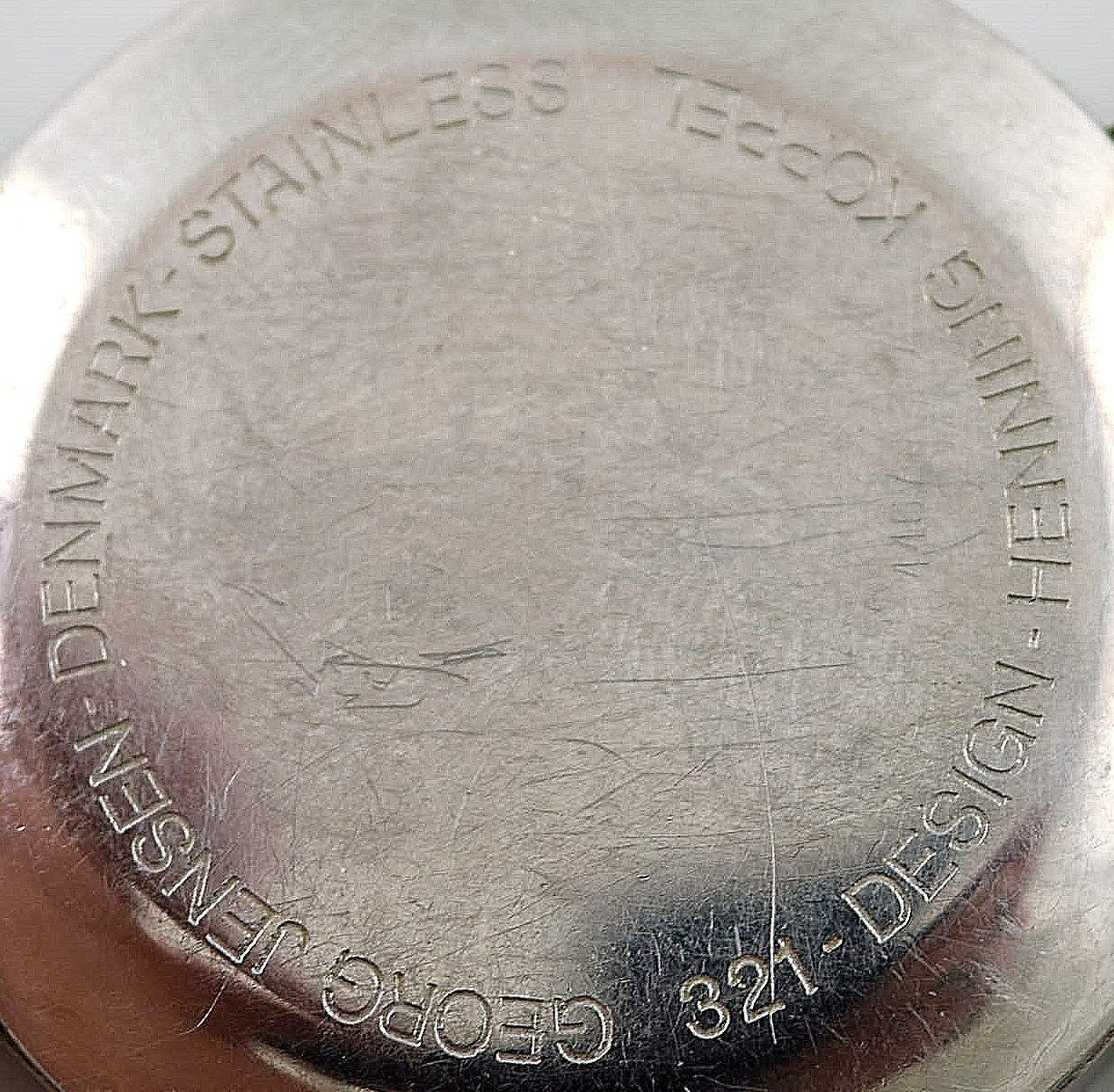 Henning Koppel: Herrearmbåndsur af stål. Udført hos Georg Jensen. Dessin 321. Quartz. Hvid skive med sorte visere og prik markører.