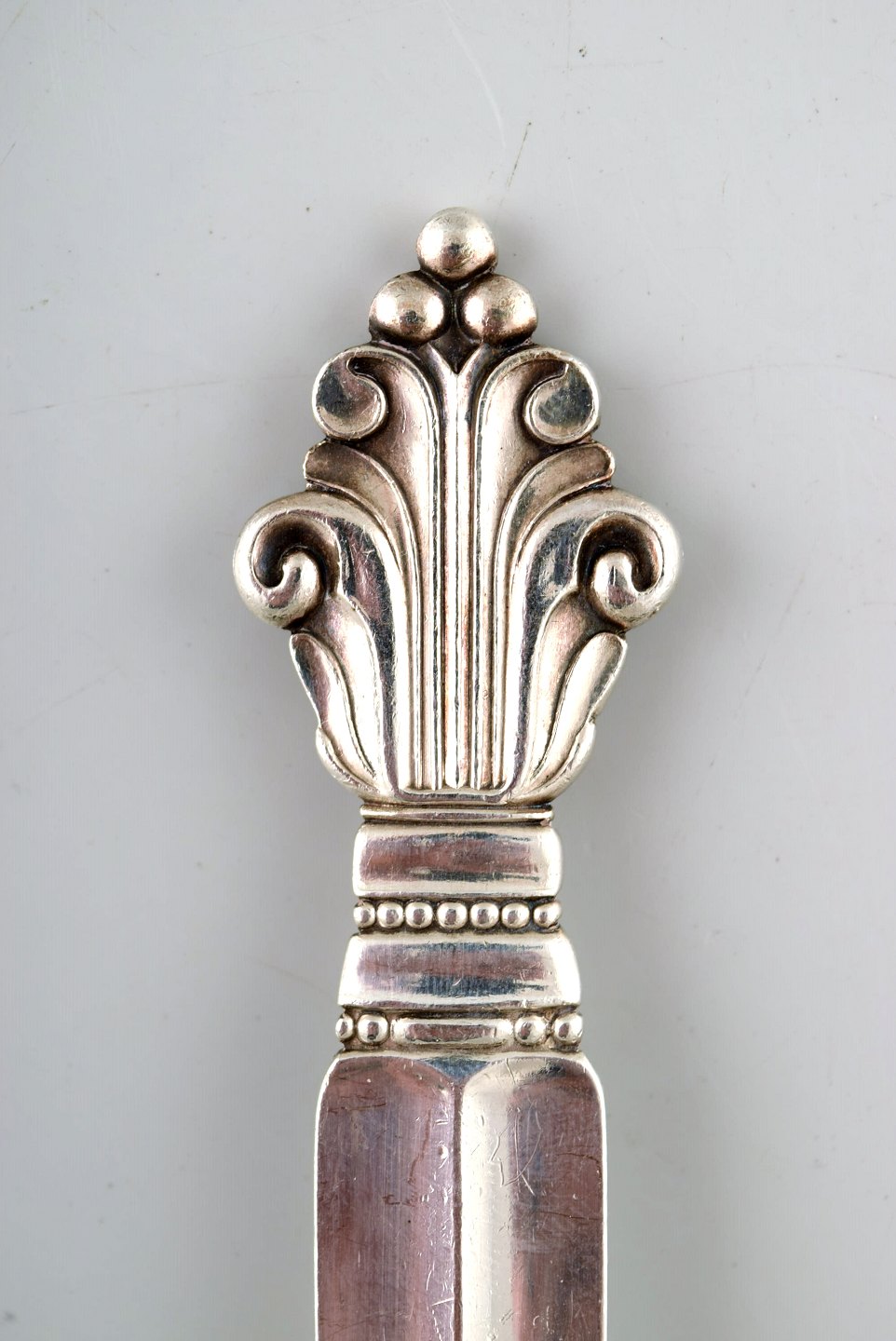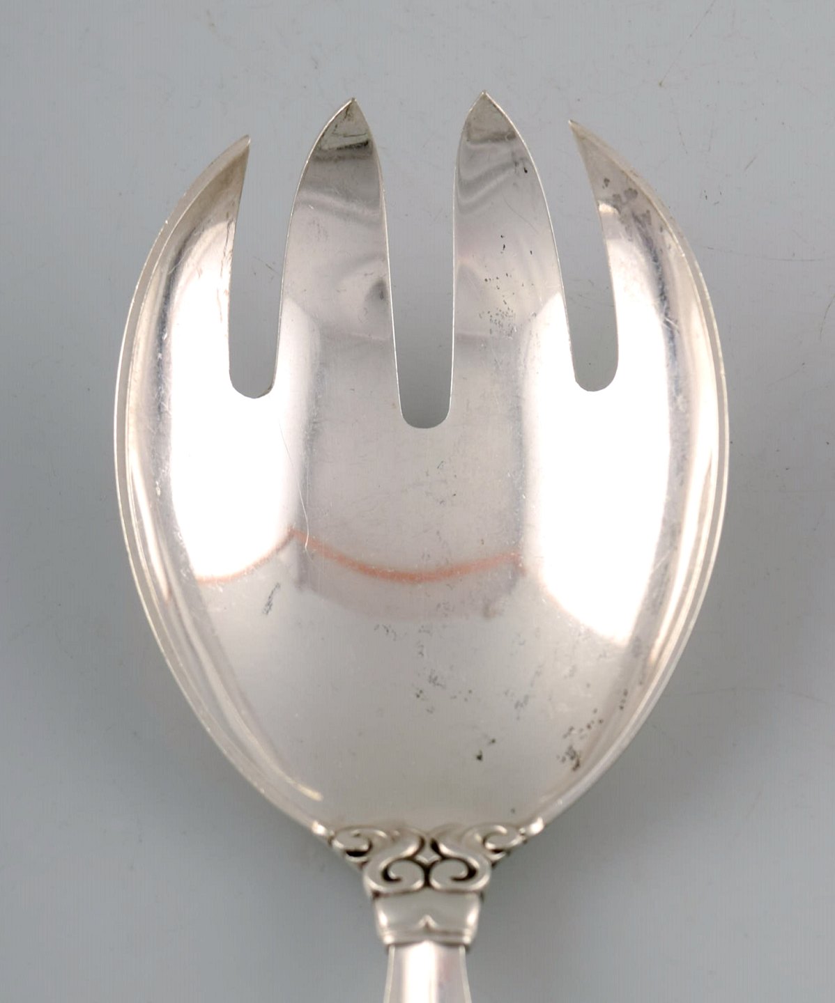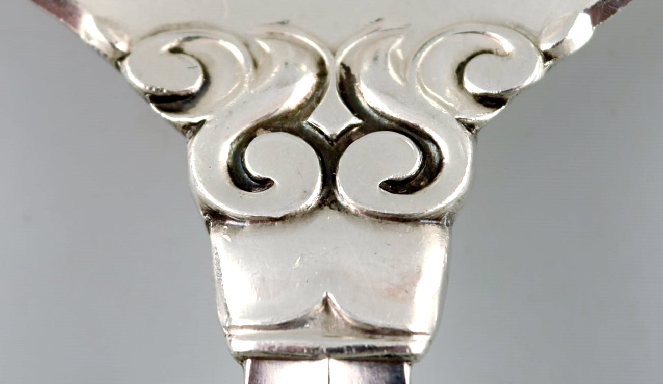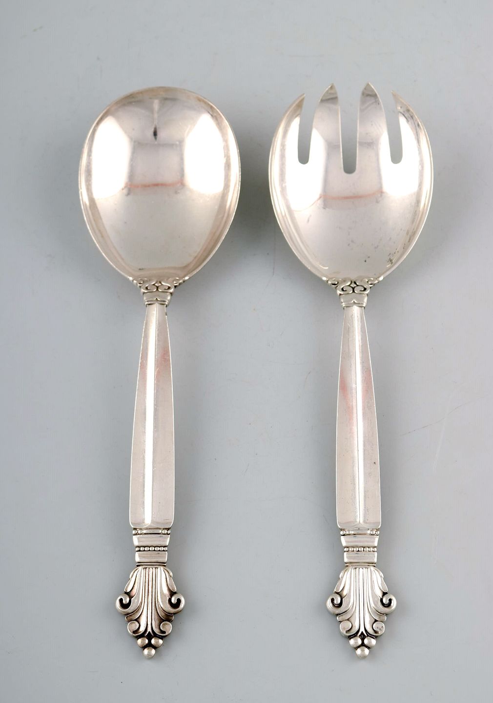 Georg Jensen "Acanthus" serving spoon and fork in whole Sterling silver. High quality. Designer: Johan Rohde. Length: 22 cm. In perfect condition.