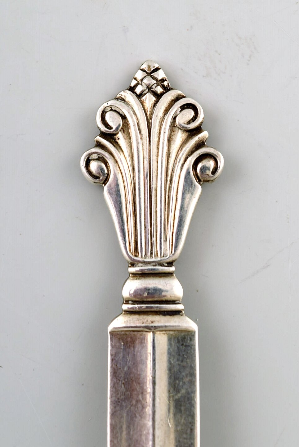Georg Jensen Dronning Sterlingsølv barne/stor theske. Måler 15,5 cm. Stemplet. I flot stand.