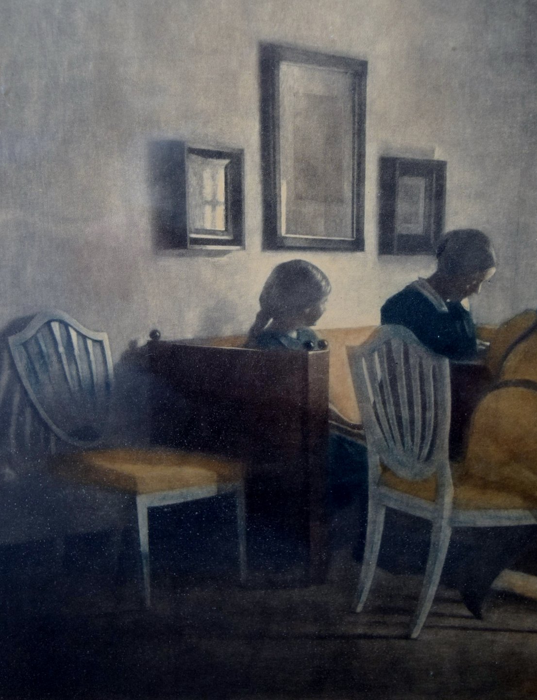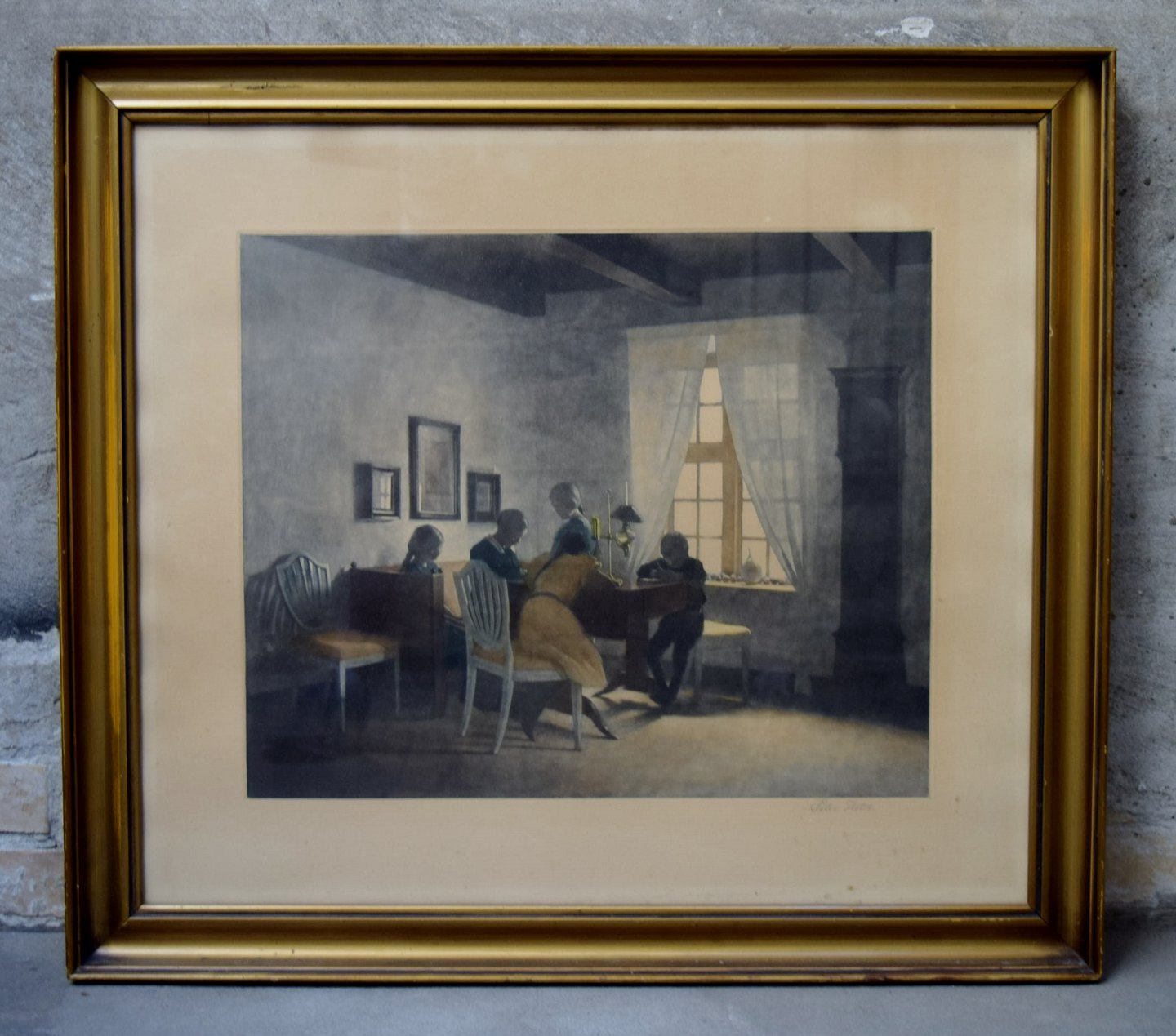 "En Regnvejrsdag". A rainy day. Interior with the artist's family. 1931. Opus 71.