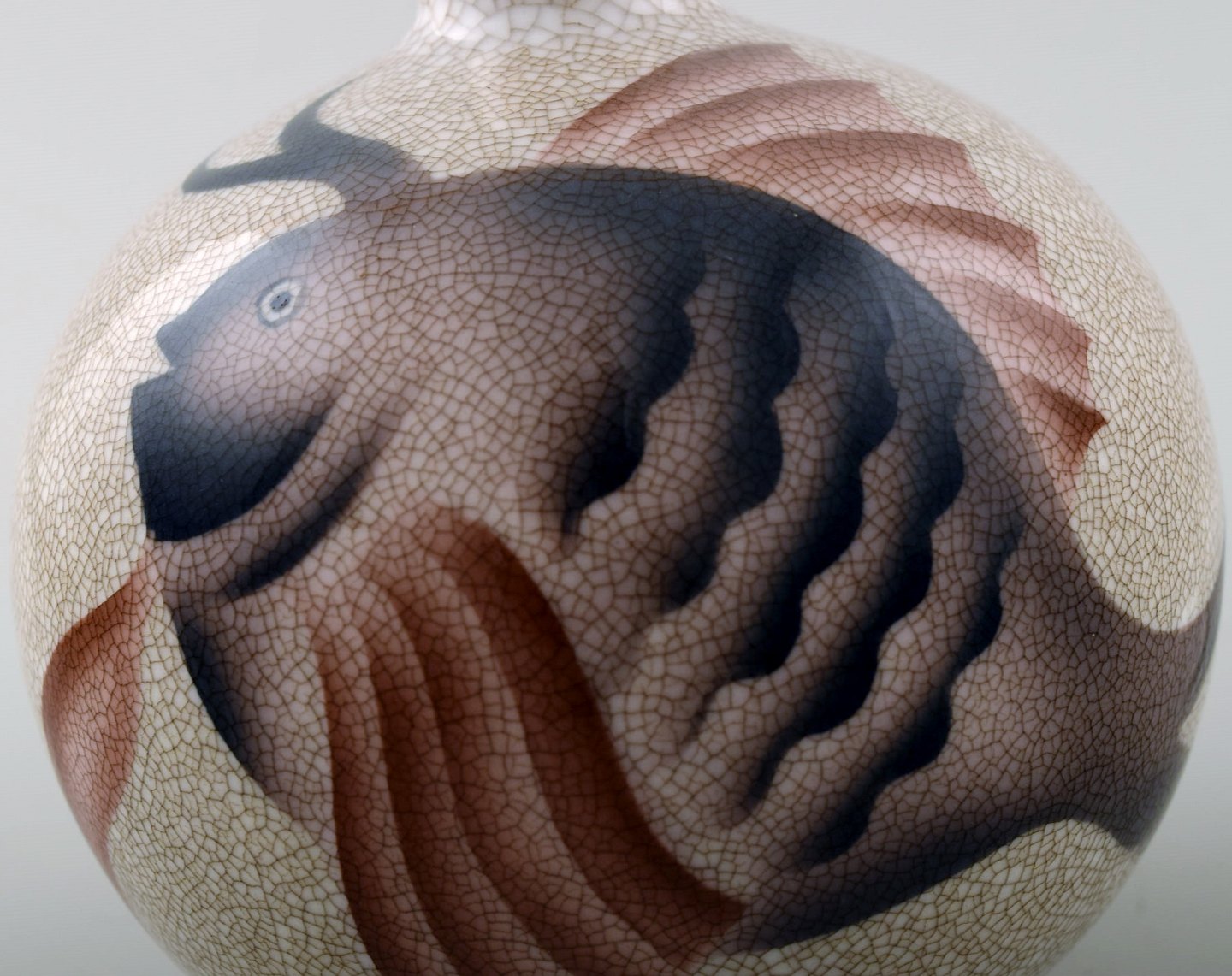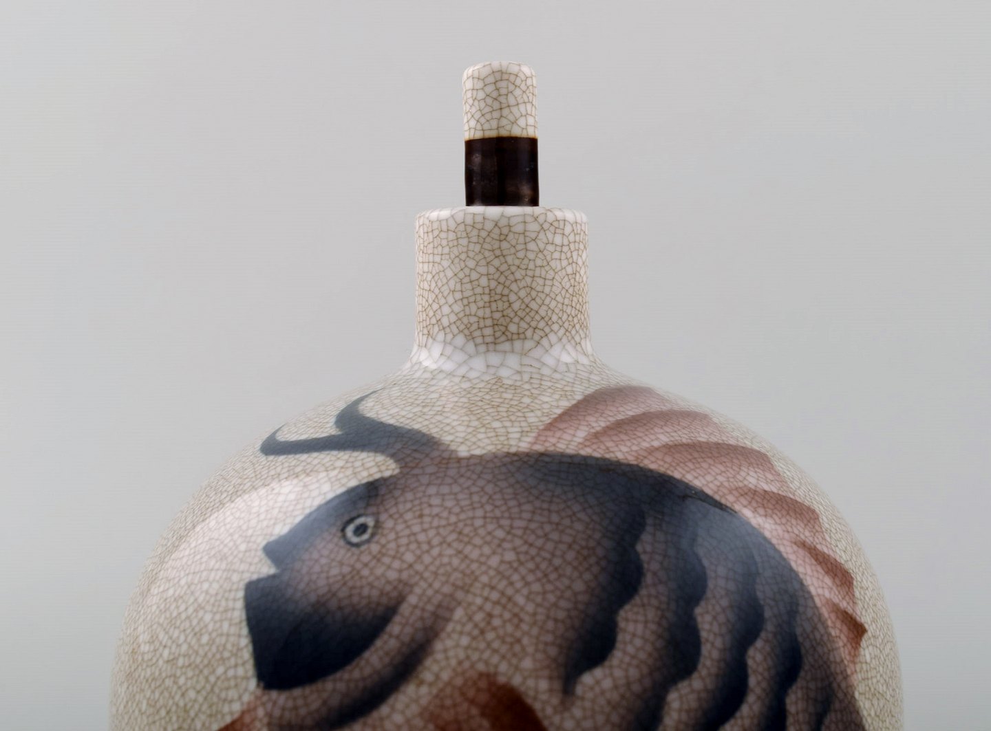 Margrethe Hyldahl (1881-1963) Art deco flakon af porcelæn, B&G, Bing & Grøndahl, dekoreret med en fisk.