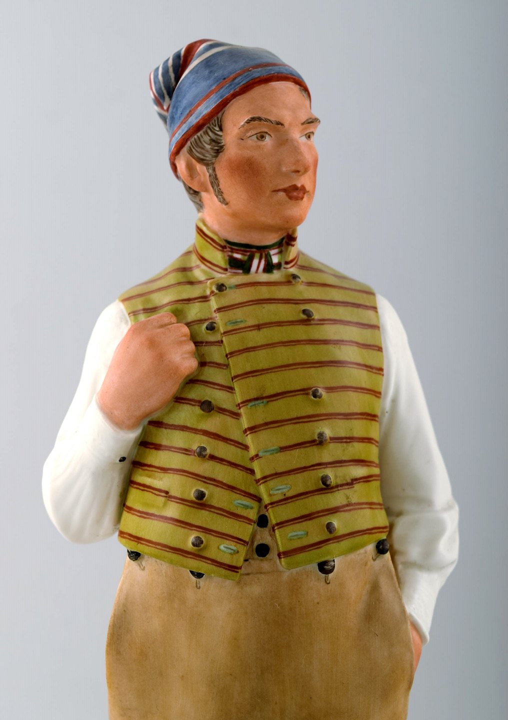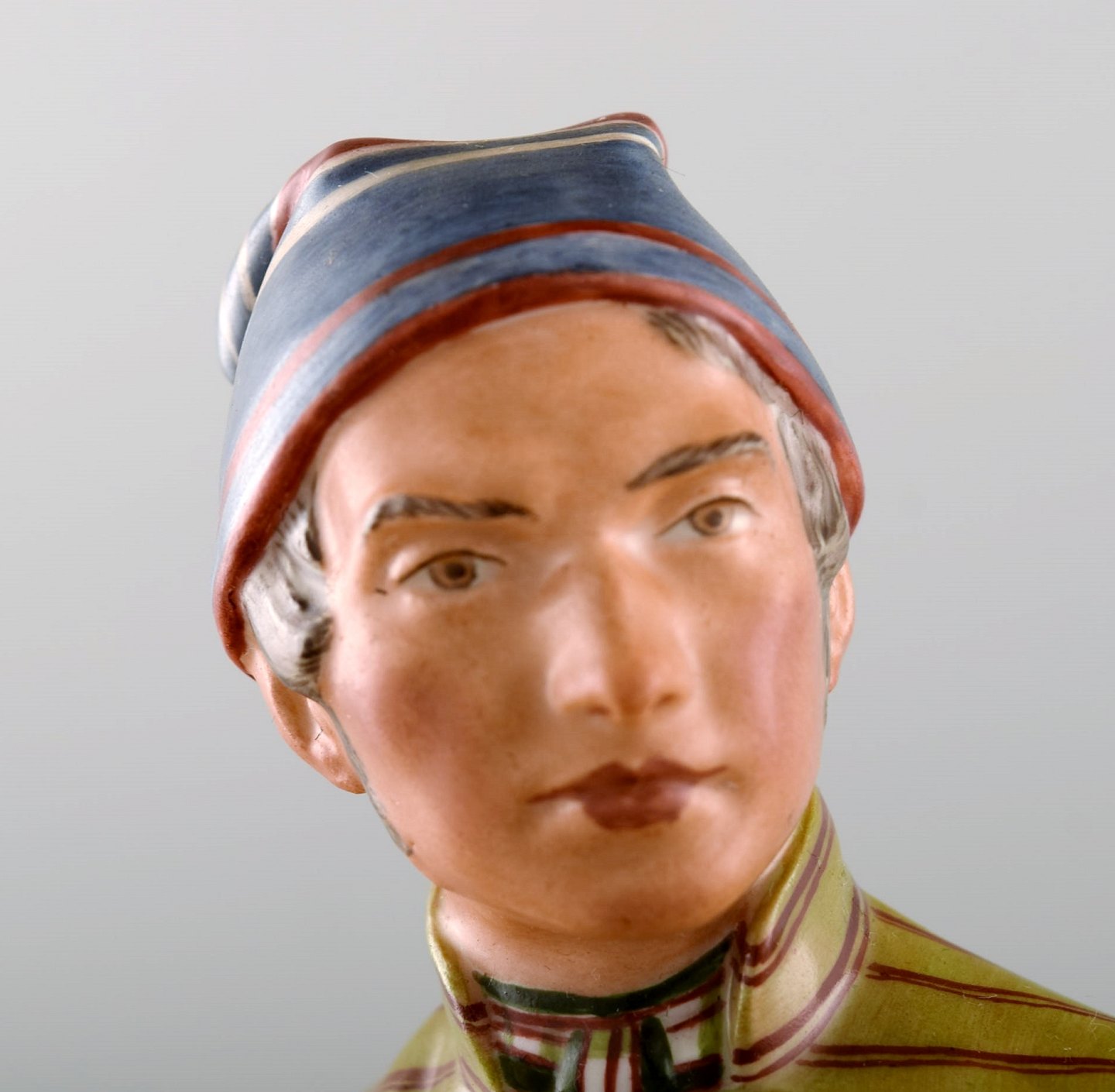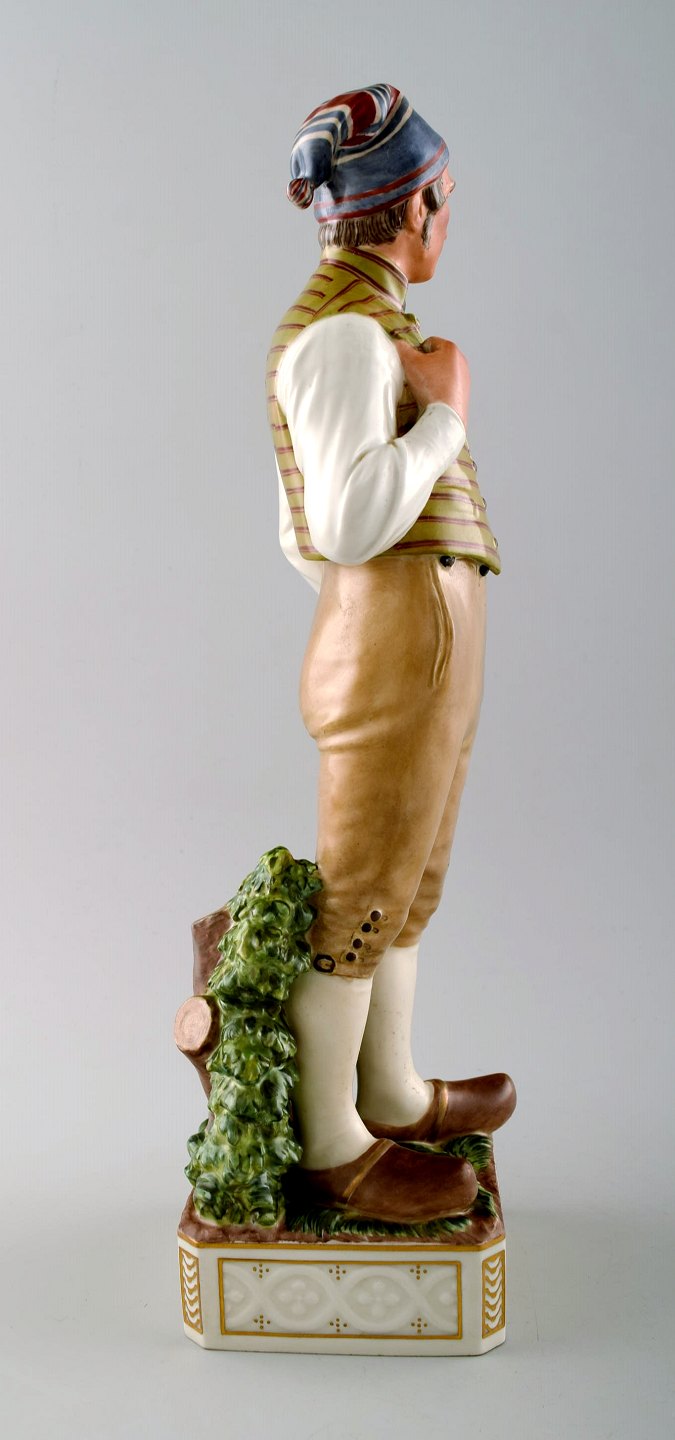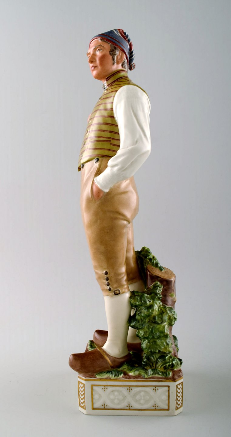 Carl Martin-Hansen: Egnsfigur "Lolland" af porcelæn, dekoreret i overglasurfarver. Royal Copenhagen, Juliane Marie mærke. Nummer 12229. Højde 33 cm. Diameter 9 cm. 1. sortering, i perfekt stand.