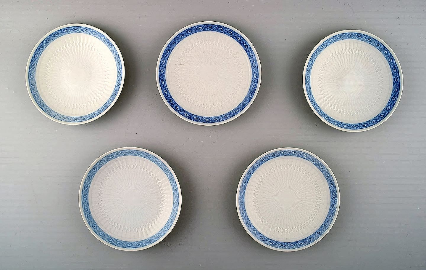 5 stk. Royal Copenhagen Blå Vifte, kagetallerkener. Designet af Arnold Krog i 1909. Dekorationsnummer 1212/11533. Diameter 16 cm. I Perfekt stand, 1. sortering.