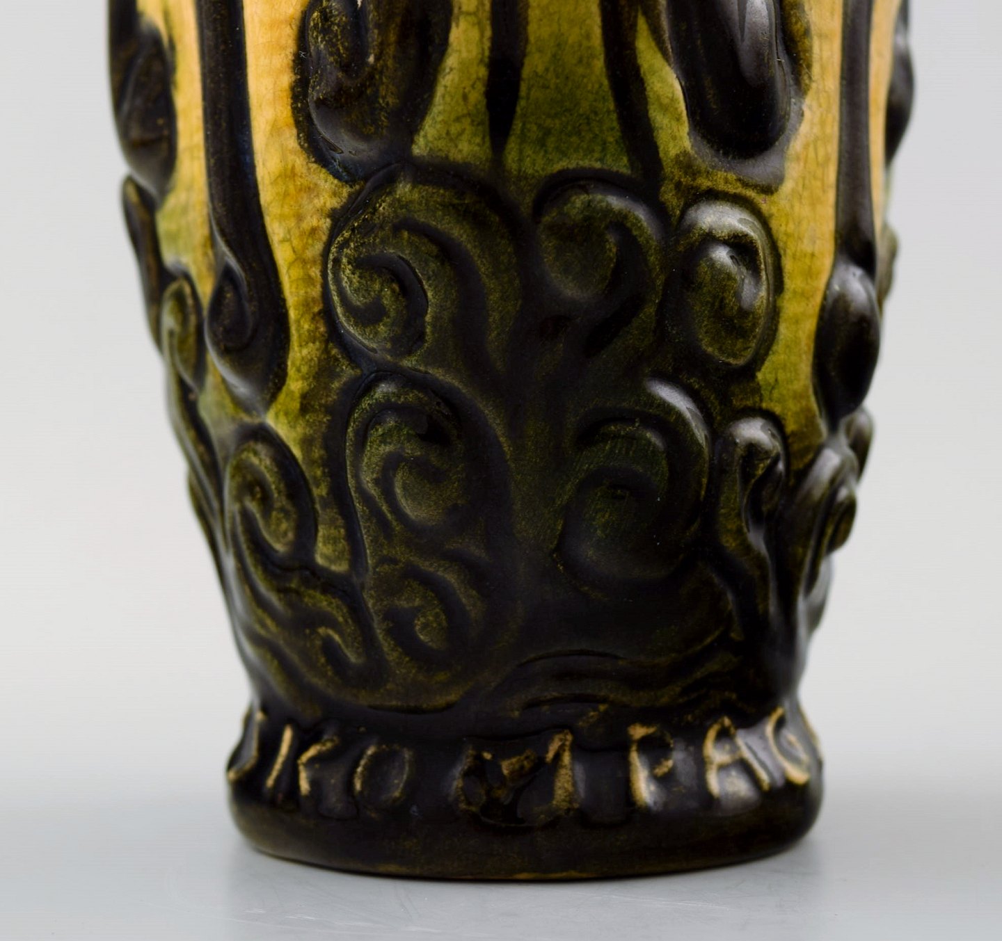 Sjælden Ipsens enke art nouveau keramikvase, ornamentik i relief.