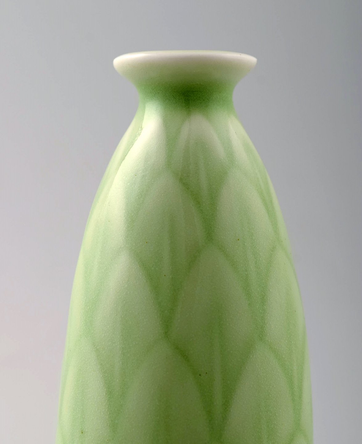 GUN VON WITTROCK for RØRSTRAND/Rörstrand, dansk keramiker, midt 1900-tallet. Vase i lysegrøn glasur. Måler : 13 x 5,5 cm. Stemplet. I perfekt stand.