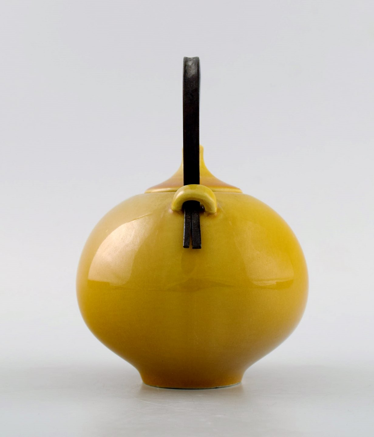 Carl-Harry Stålhane, Rørstrand/Rörstrand, lille thekande i keramik. Glasur i gule nuancer. Måler 11 x 9 cm. (uden hank) I perfekt stand, 1. sortering.