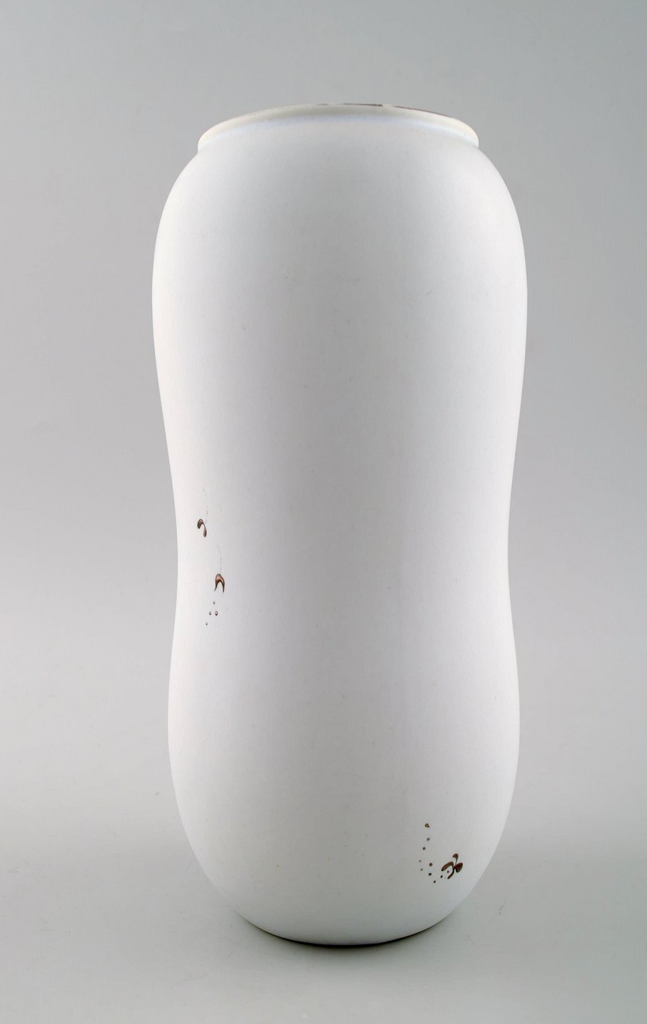 STIG LINDBERG, vase, "Grazia", hvidglaseret, malet med sølv dekoration i form af blomster, Gustavsberg, Sverige. Højde 22 cm. Bredde 11 cm. Modelnummer 217. Stemplet. I perfekt stand.