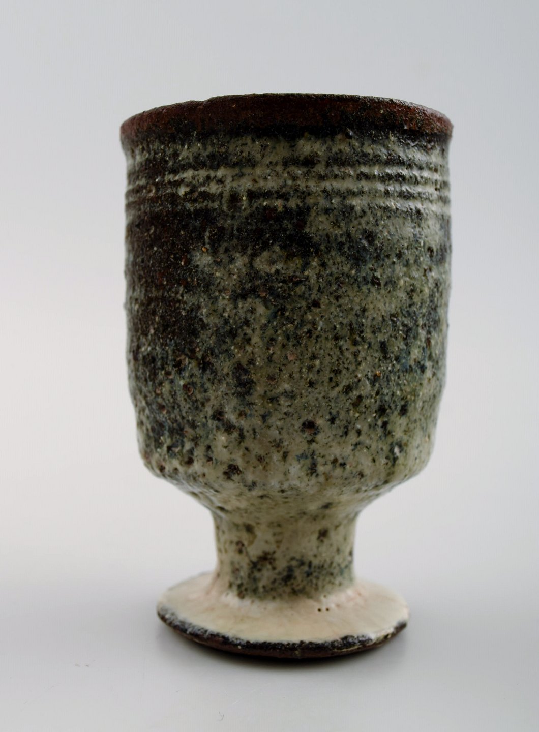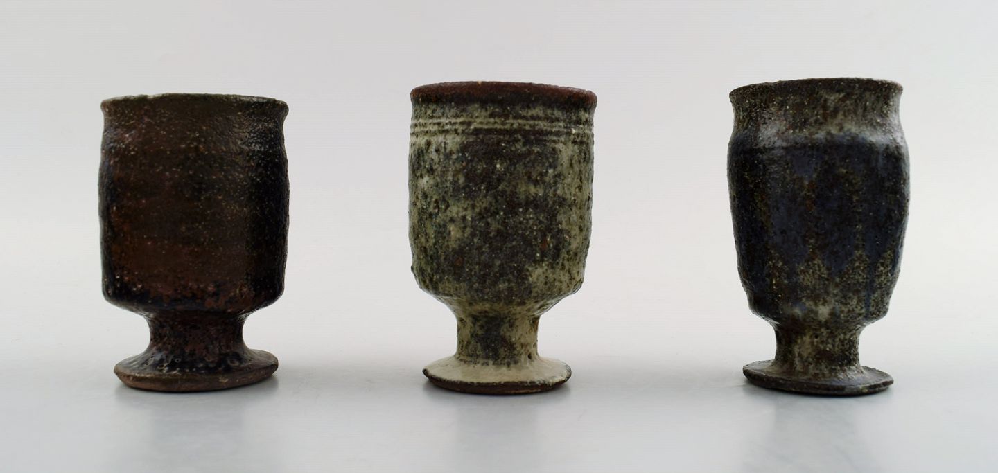 Gutte Eriksen, eget værksted, tre keramikbægre. 1940/50´erne. Stemplet. Måler 8,5 x 5,5 cm. I perfekt stand.
