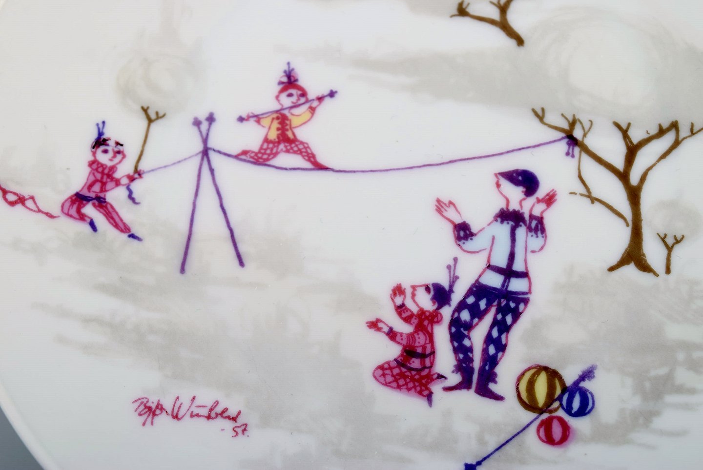 Rosenthal Studioline, Bjørn Wiinblad 9 tallerkener i porcelæn, linedansere. Sjælden tallerken. I perfekt stand. Måler 19,5 cm. Stemplet. Dateret 57.