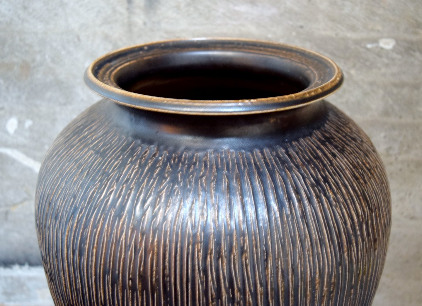 Monumental keramik gulvvase i klassisk design Glasur i brune nuancer. Måler : 73 cm. x 33 cm. I perfekt stand. Ustemplet.