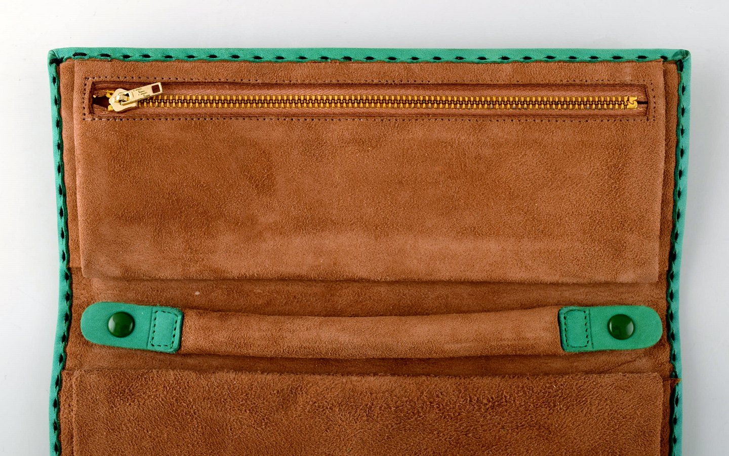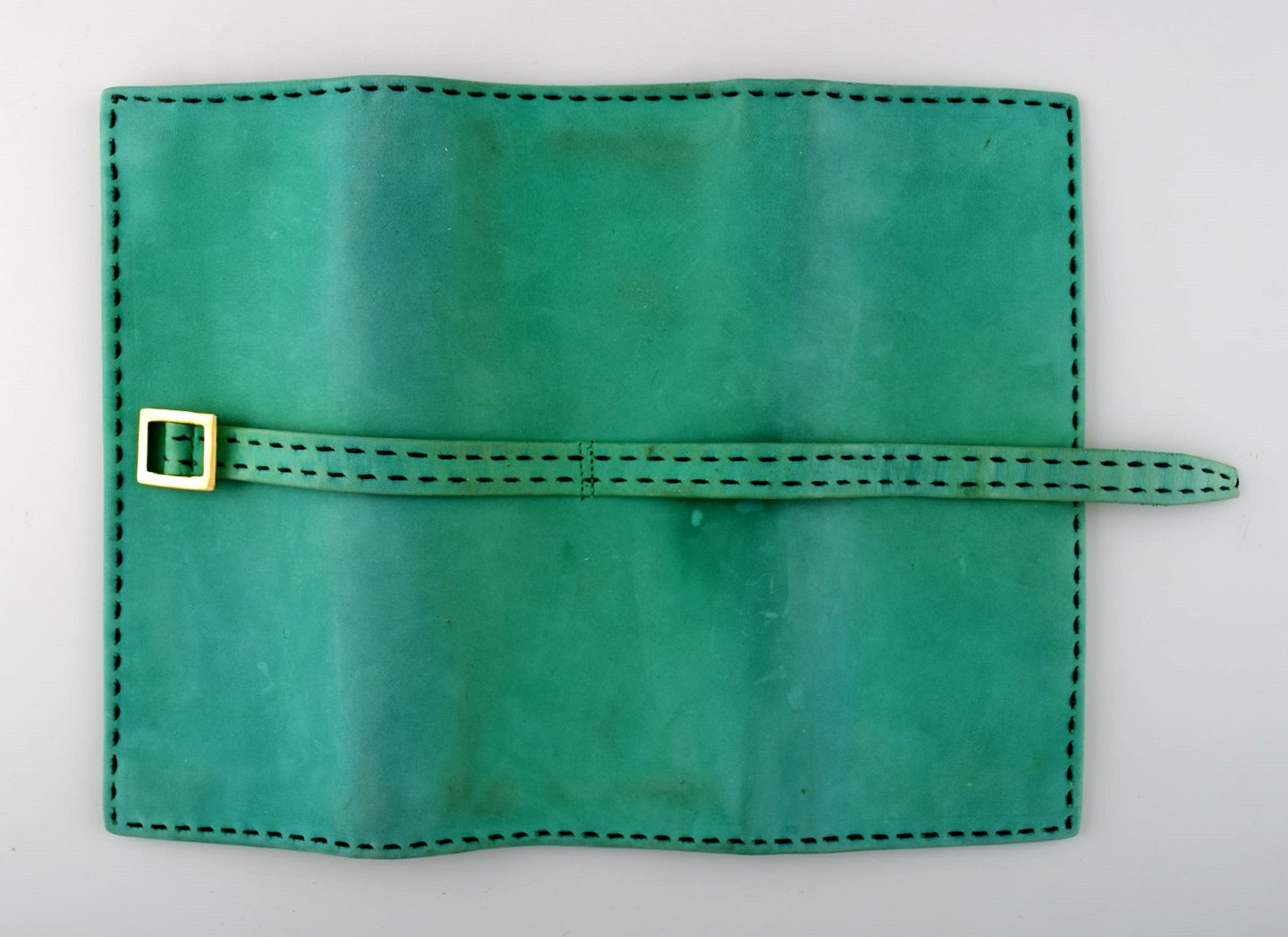 Georg Jensen smykkepung i grønt læder med gyldent logo. Måler : 22 x 10 cm, I flot stand.