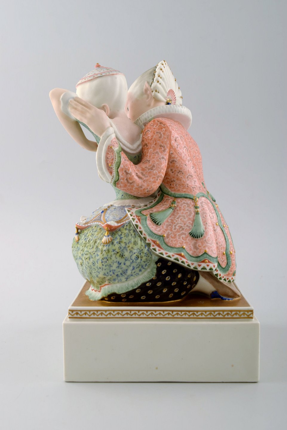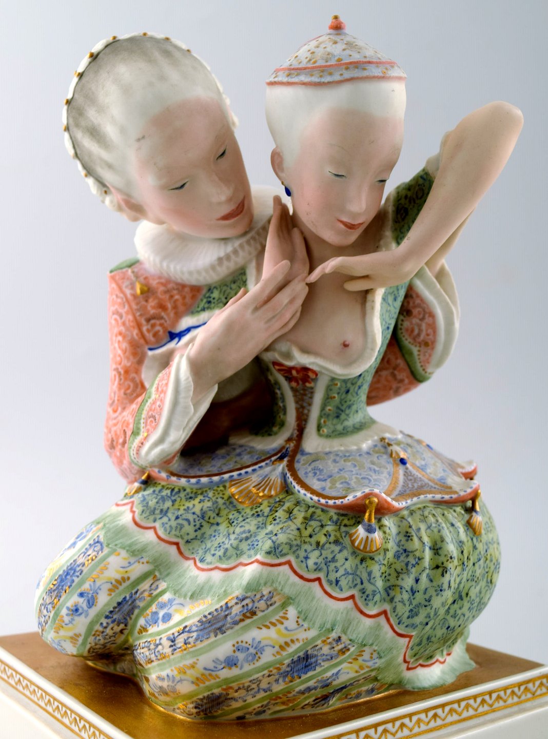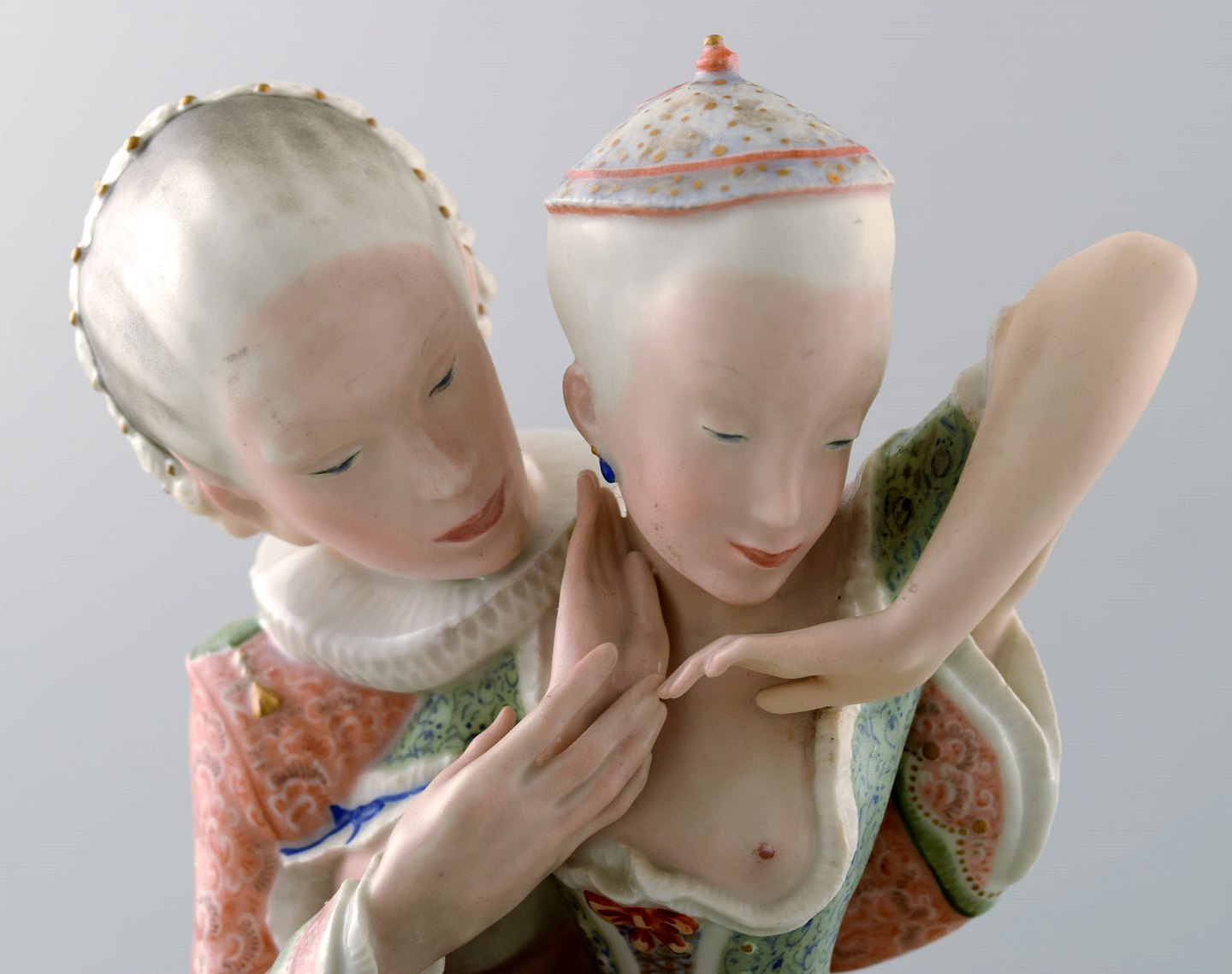 Royal Copenhagen. Gerhard Henning: "Eventyr I" figurgruppe af porcelæn, dekoreret i overglasurfarver og guld.
