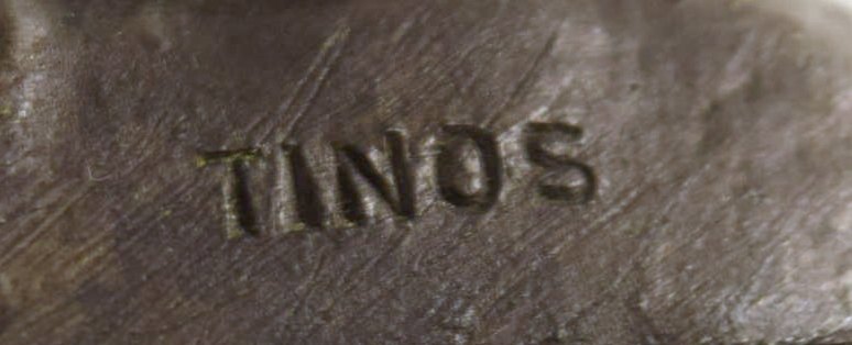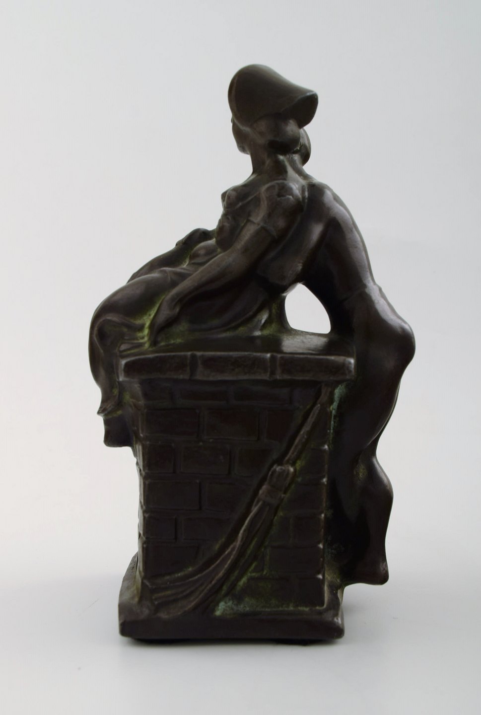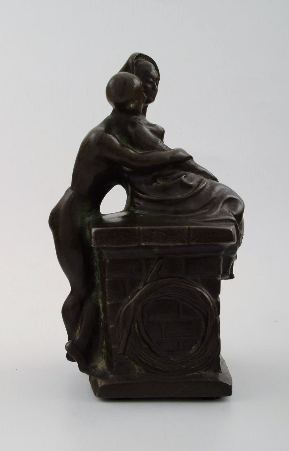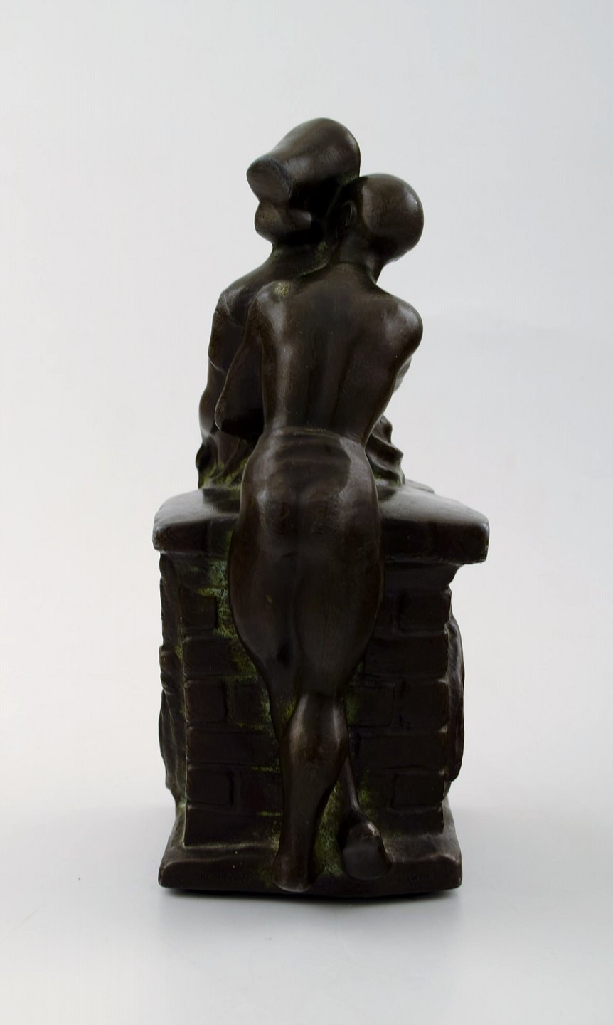 Hans Kongslev for Tinos, Hyrdinden og Skorstensfejeren efter H. C. Andersen, patineret tin.