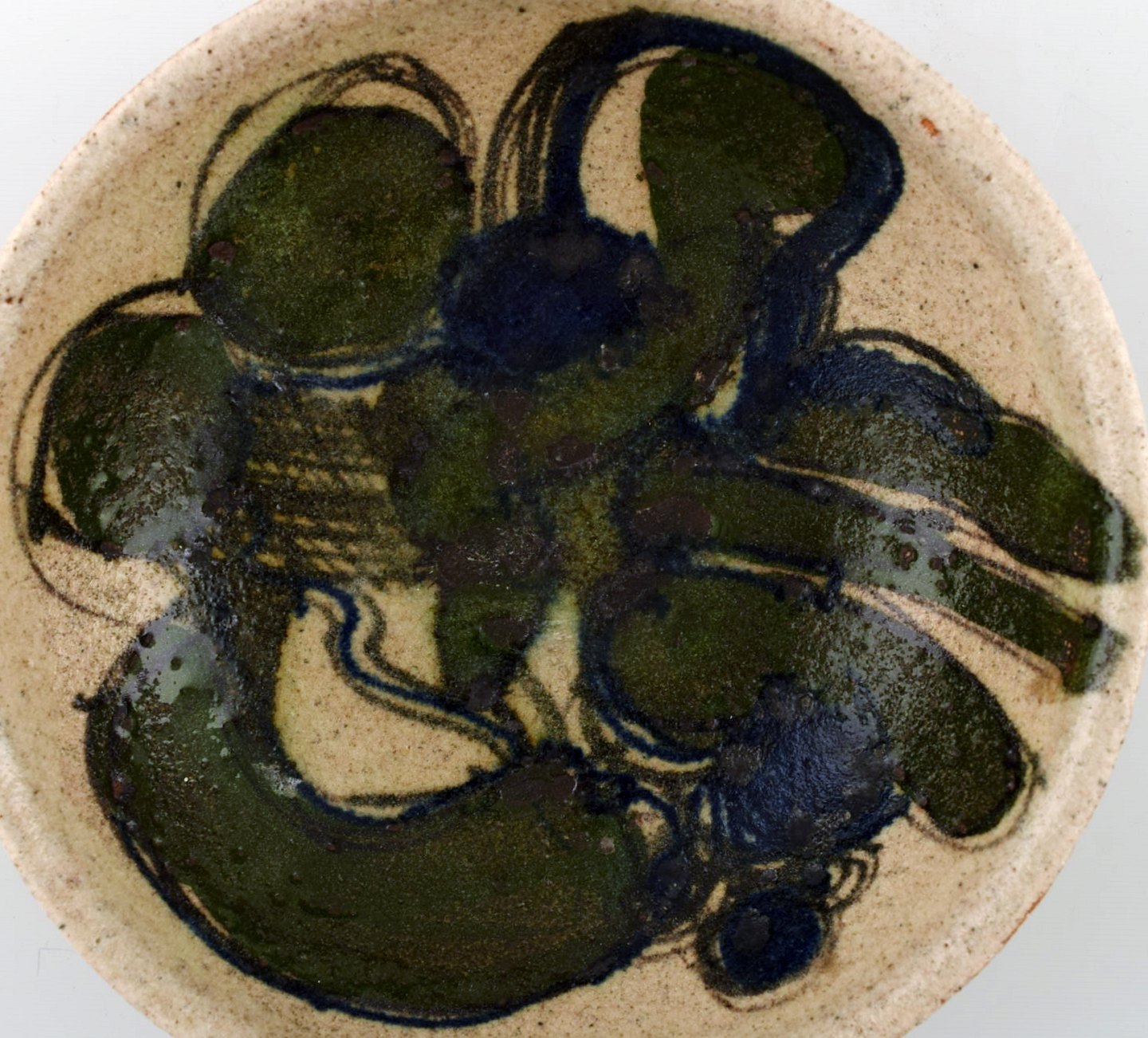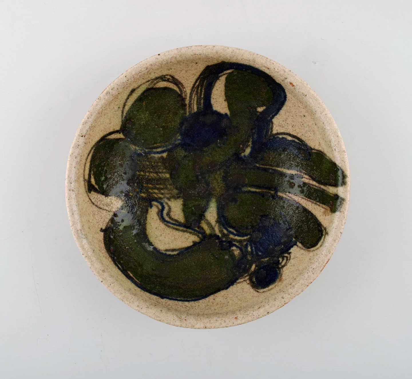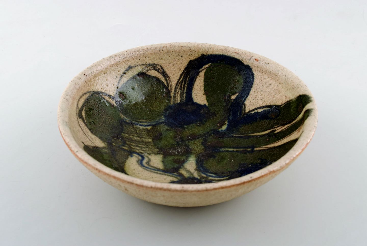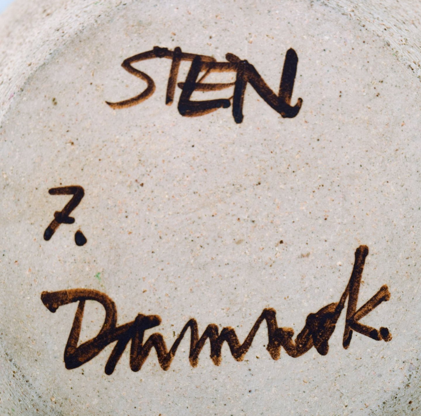Unique ceramic bowl by Sten Lykke Madsen, own workshop. Figuratic scene. Signed: Stone. Measures 19 cm. X 6 cm. In very good condition.