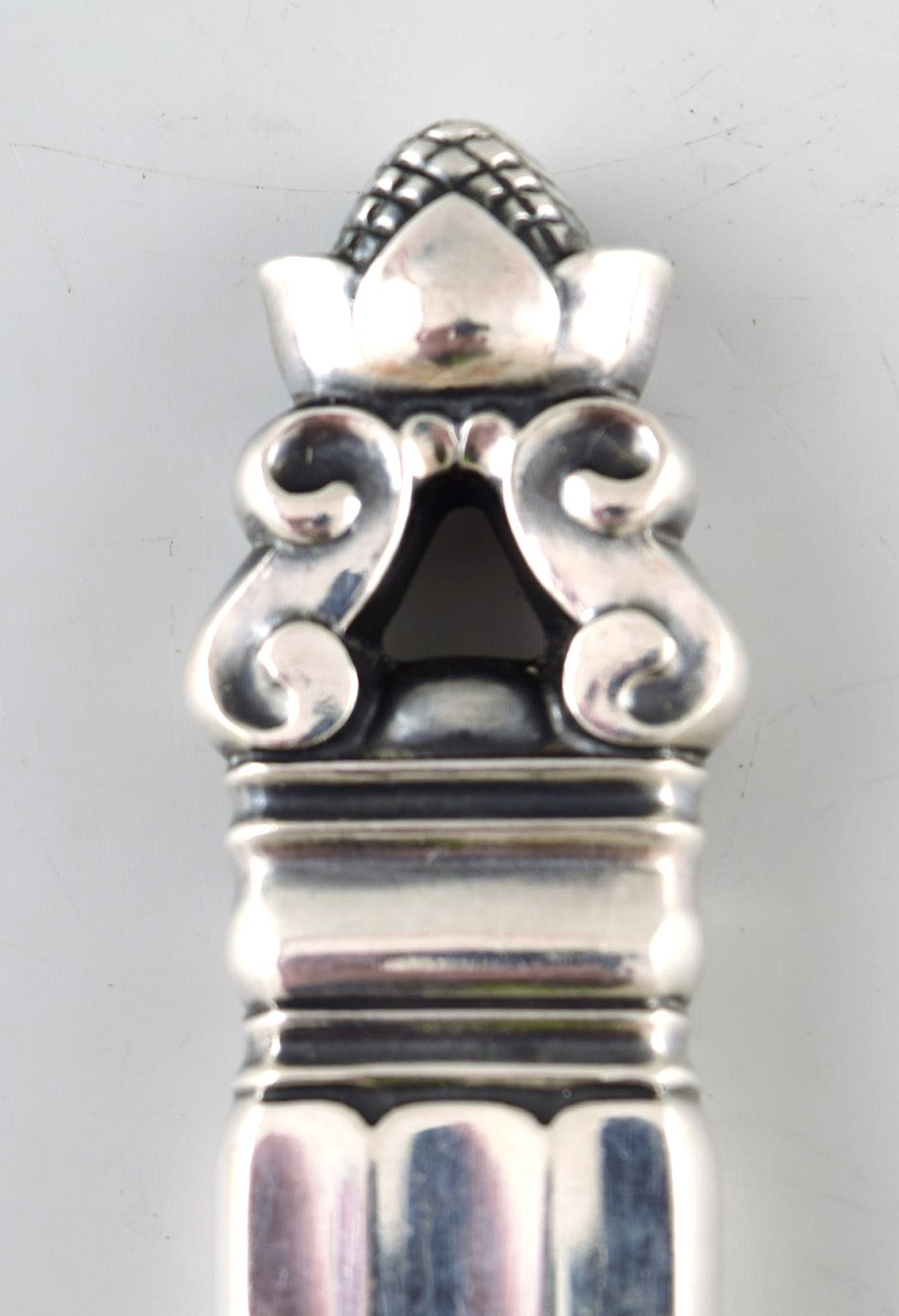 Georg Jensen Acorn cake knife # 196, Sterling Silver and Stainless Steel. 2 pcs. in stock. Length 27 cm. Stamped c. 1950. In perfect condition.