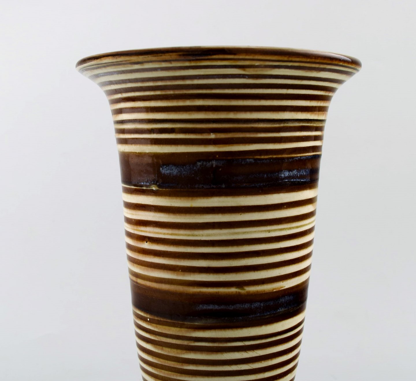 Kähler, Denmark, glazed stoneware vase with stripes on round foot.