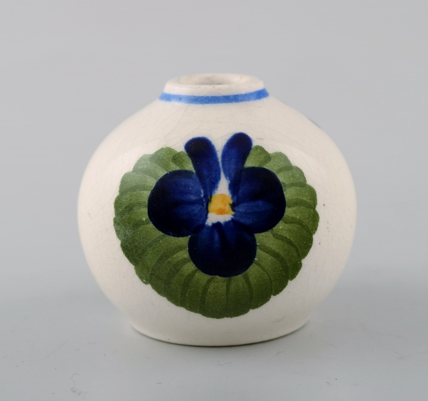 Aluminia vase, håndmalet med blomster, tidligt 1900 tallet. Måler: 5 cm. x 5 cm. I perfekt stand. 1. sortering.