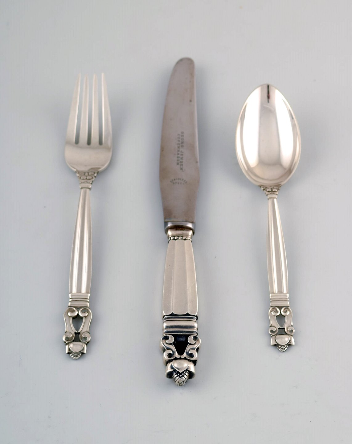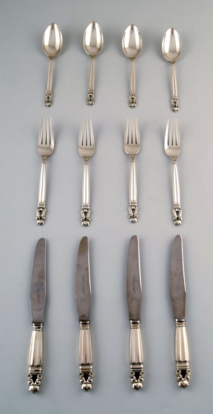 Georg Jensen "KONGE" Komplet middagsservice til fire personer. Sterlingsølv.