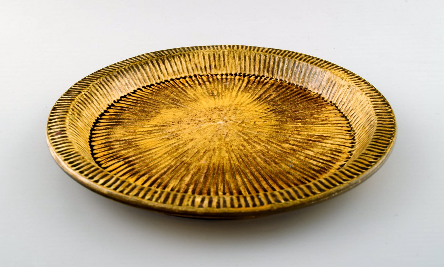 Kähler, HAK, glaseret fad, 1930'erne. Designet af Svend Hammershøi. Urangul glasur. Måler 24,5 x 2,5 cm. Stemplet. I perfekt stand.