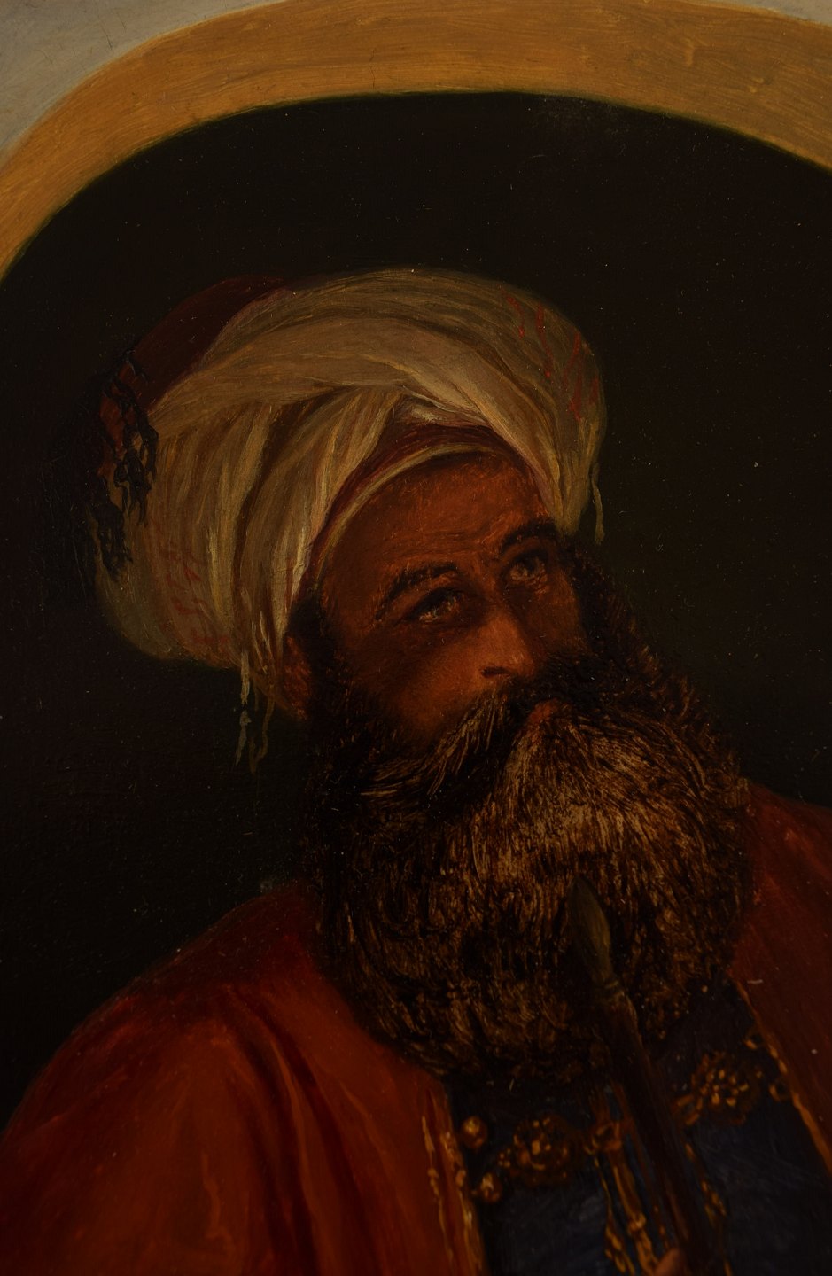 Ubekendt maler, 19. årh. En piberygende tyrker med turban. Usigneret. Olie på træ.