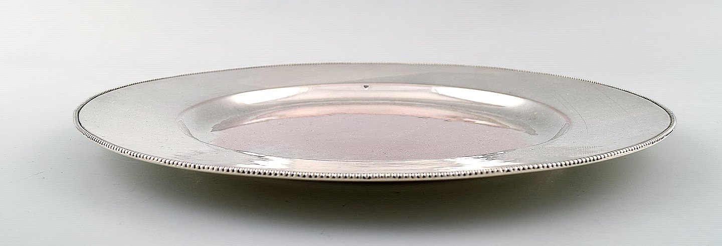 Evald Nielsen dækketallerken af hammerslået sterlingsølv med perlebort.