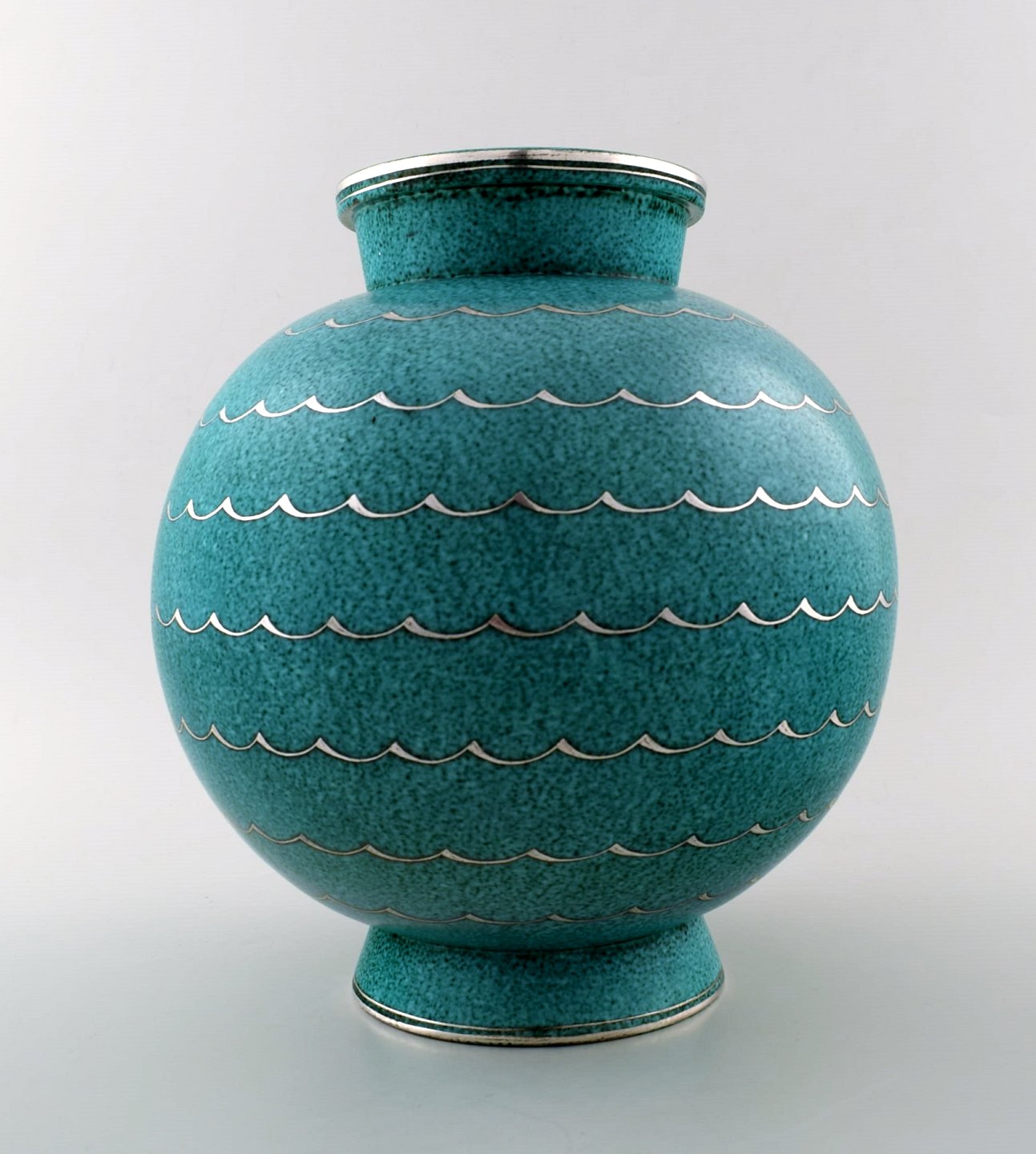 Wilhelm Kåge, Gustavsberg, Argenta Art deco stor kuglerund keramikvase dekoreret med havfrue. Sverige 1940´erne. Måler 26 x 22 cm. Stemplet Gustavsberg, Kåge. I perfekt stand.